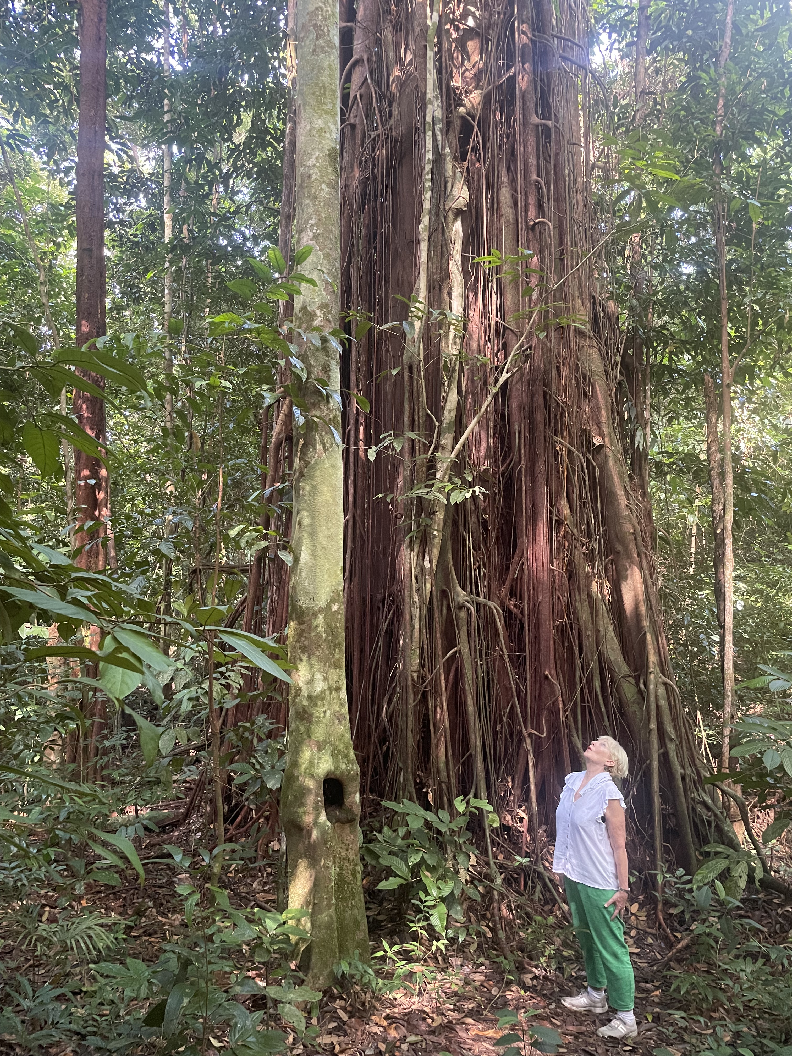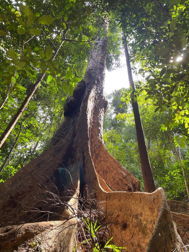 There was no need to bang on the flying buttress roots of the massive trees that ‘Chief Instructor’ had told us to do in an emergency – like jungle drums. Imagine, morse code amongst the chorus of cicadas that never cease their racket. No one would hear my cry for help with that din going on.