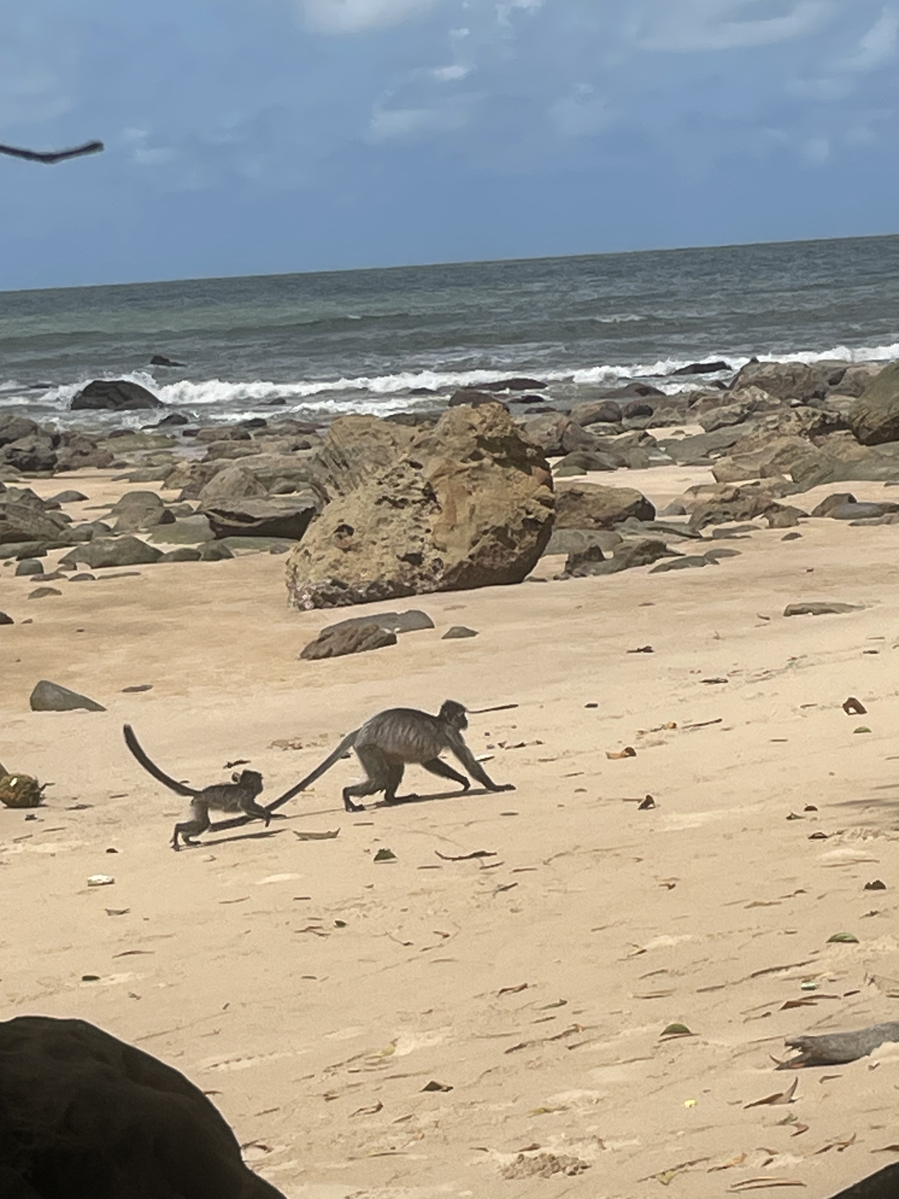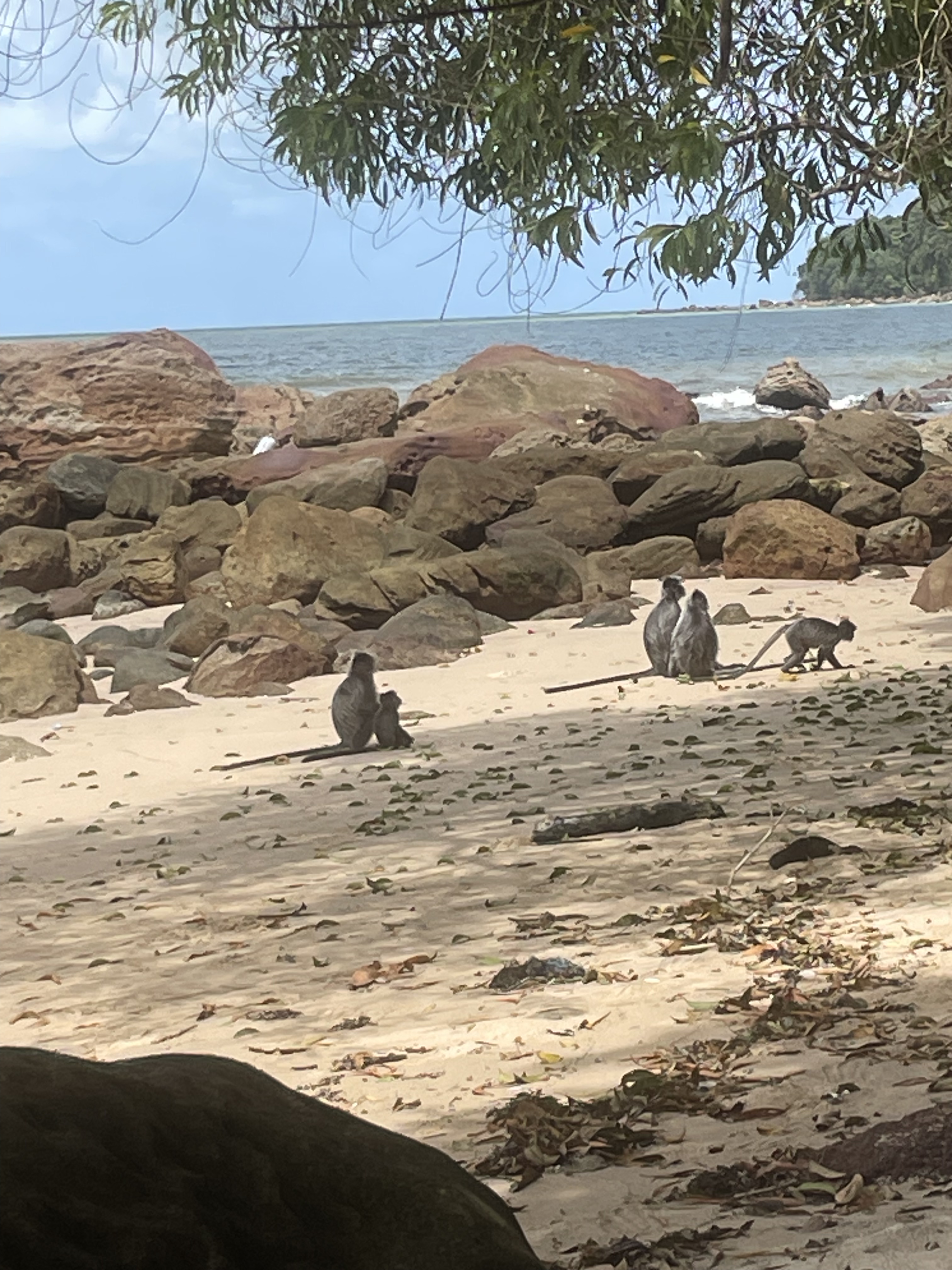 When we did get back to the beach and civilization, having seen no insects or hammerhead worms we were suddenly treated to the family of silver leaf monkeys cavorting on the sand having a day out. It was magical.