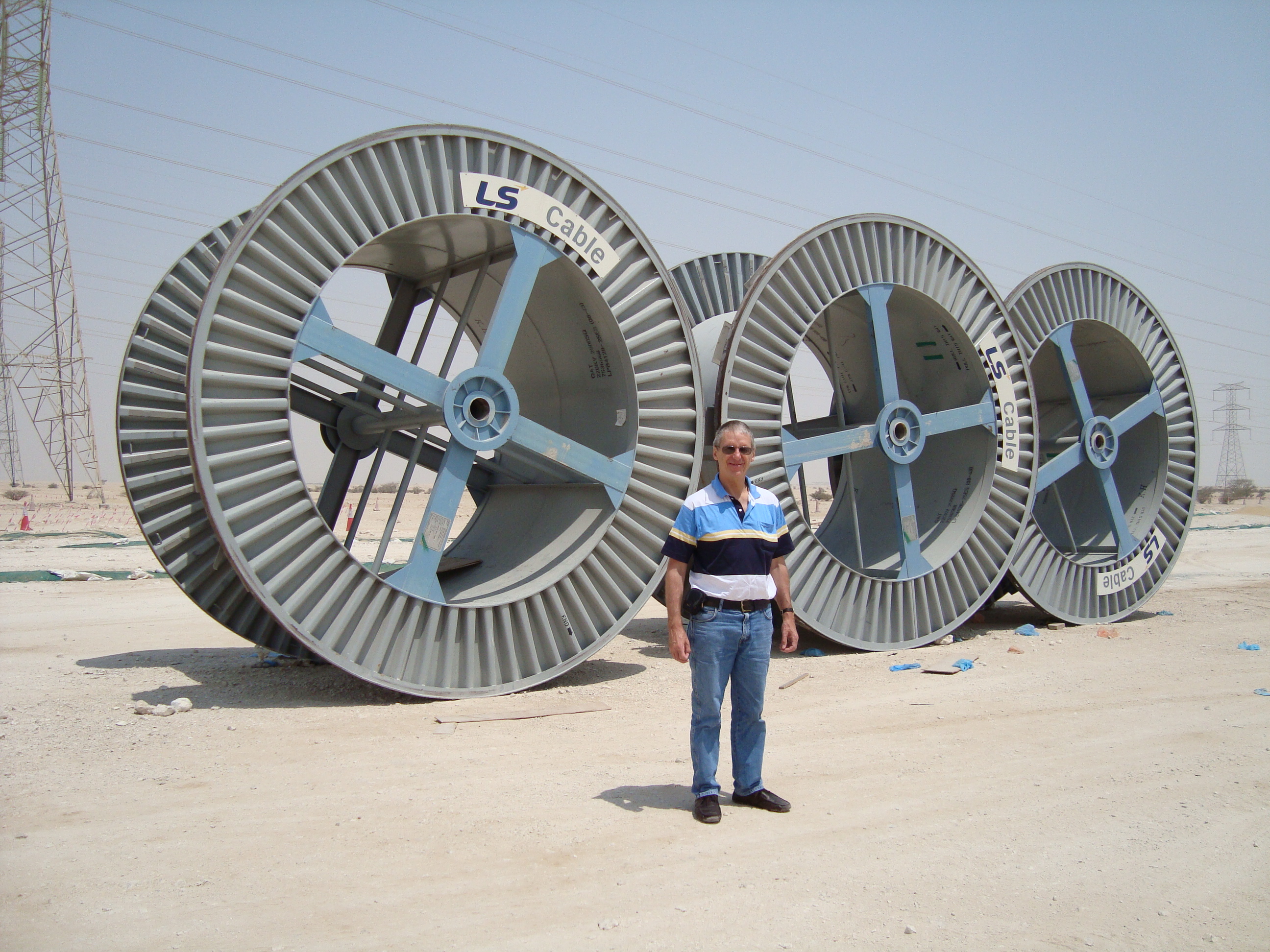 On the journey yesterday we did a little detour to John’s site…(that famous four letter word). He wanted to show me exactly what his project was and what was being done. They are laying 220,000 volt electricity cables, to replace the overhead pylons. One day they will provide the power for the new education city. I saw a massive trench cut into the sand, which went on for 8 kms. I was concerned that some poor Sri Lankan or Indian had manually hacked it out as part of a chain gang, but instead in this day and age they man the machines that hack the rocks. To be honest, it still looks a vile job, operating great vibrating monsters when the temperatures are well into the 50’s. Now that it is Ramadan, the hours are reduced, but still. Giant cotton reels come from Korea with the cable wrapped around them, and once they have been laid, these monsters just lie there like some abandoned sewing project.