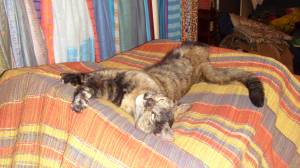 Behind this rickety green door, is a warren of rooms. There is a huge selection of ethnic furniture, some prettily decorated in red flowers and stained yellow and so on…mostly from India.John was blind to all the trinkets, pretty lanterns, embroidered cloth, which had so bewitched me, instead he was entranced with the family of kittens that was scurrying about. As we went into the interior of the ‘shop’ (where there were no prices, the English woman who was the care taker told us, ‘just ask me, and I’ll check with the owner’ who was sitting in an inner sanctum. He’s Lebanese.) As my eyes feasted on carpets from Iran, and unusual pieces of ‘occasional’ furniture John found two three legged cats! One had the hind one missing and the other had a front one gone. They were so affectionate, purring, sitting on luxurious rugs, rolling about, getting patted and when they tried to take a little nip they suddenly fell over, quite undignified, in their own peculiar three legged way!