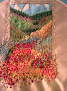 I’ve been going to an embroidery course in the Souq…we are transposing a Monet painting into an embroidered picture. So far I’ve done 6 hours out of a 9 hour course. We made the back ground in hand quilting, creating the sky and the fields. Then made a frame from raw silk in an ivory shade. Imagine my horror when she handed me a blow torch and told me to singe all the edges…after all that work, I was a nervous wreck. She said the antique look would give it character. Yeah right. Next week we embroider the trees and poppies and so on. NOW I understand why people might charge £100 for such a frippery!