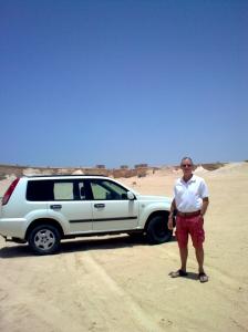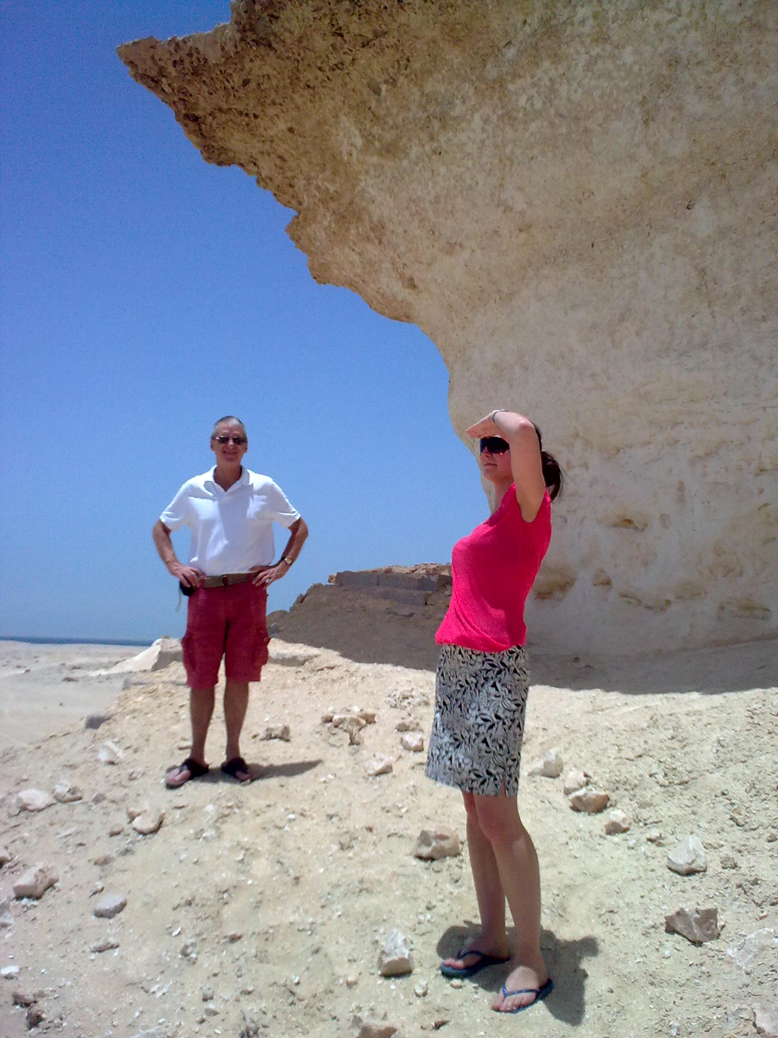 We found the beach, paddled and burned up, then ran to the car and surreptitiously drank some water and took some photos of each other, wondering if we would be shot for drinking and photographing all at once! I didn’t feel comfortable about putting on a swimsuit, as it’s the Holy Month. We had to smile as 2 English guys came down and frolicked about in the water, then a white land cruiser with 2 Arabs came and parked. John said how weird is that? Miles and miles away from anywhere, on a deserted part of the coast, 2 guys come and park to watch 2 other guys mucking about in the waves!!!!
