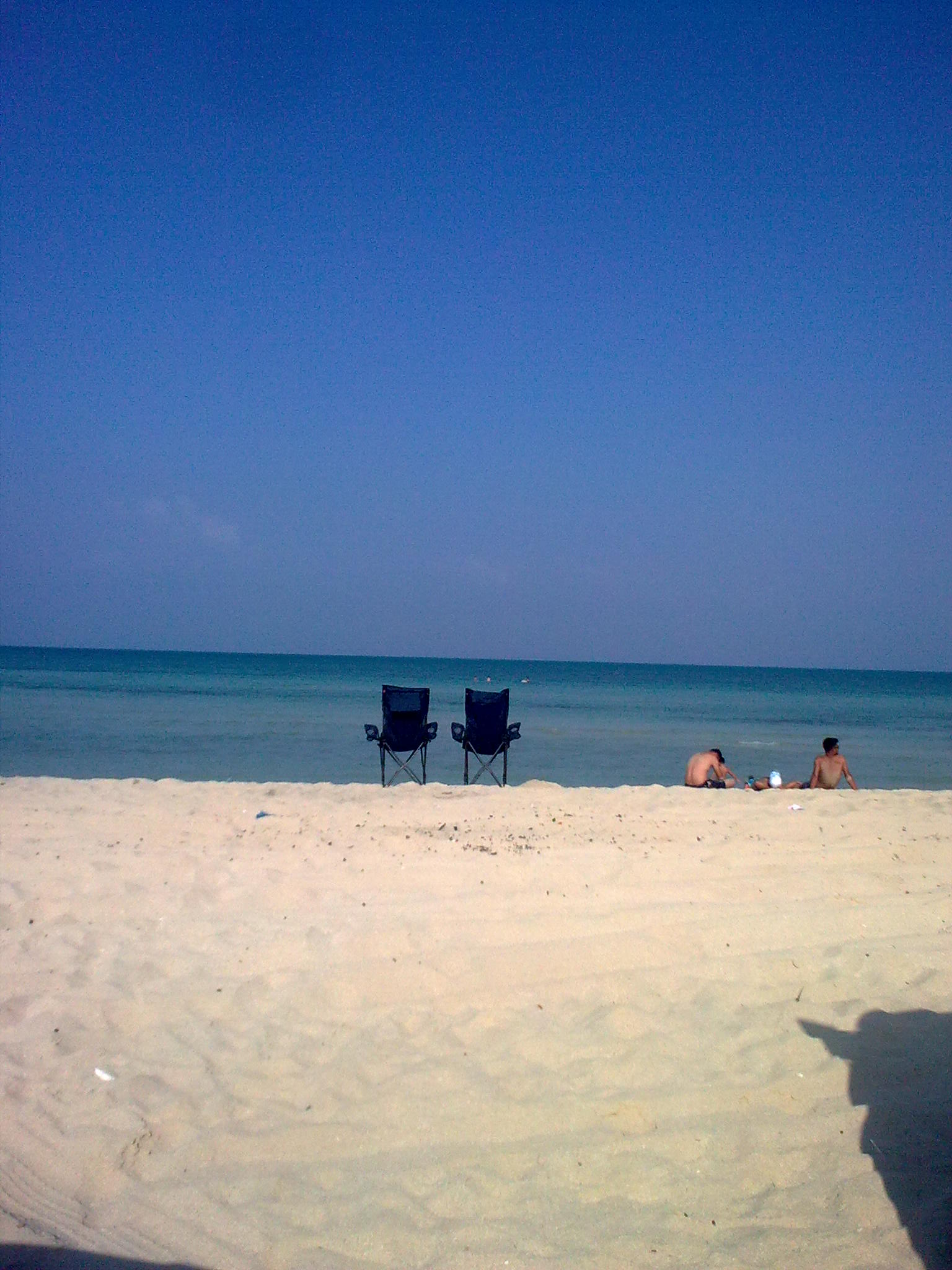 Yesterday we went for a fare well trip to our beach…so sad, and we swam and floated (effortlessly) and when we left, we left our Russian fishing chairs, bought on a whim, after a drunken lunch in Kiev. They have served us well. I took a photo of them, sitting forlornly on the skyline…just hope that no one thinks we swam away to sea on a joint suicide mission!