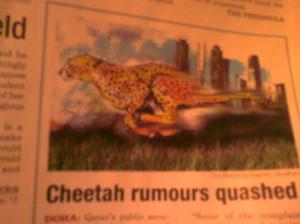 and predictably there was a small piece on the front page quashing any rumours about cheetahs or tigers. To quote, “It’s all rumour, so one must not lend an ear to it….some of the complaints were malicious and necessary action has been taken against them.” Apparently “there is nothing to worry about as the security authorities are very much keen to guarantee security and peace in society.” It went on to say “efforts are on to find out how the talk of a cheetah being sighted began in the first place” Hmmmmm. I am more concerned about how many homes are housing these exotic pets. But still, I must remember we are just expats in bubbles, and must not question or ‘see’ anything.