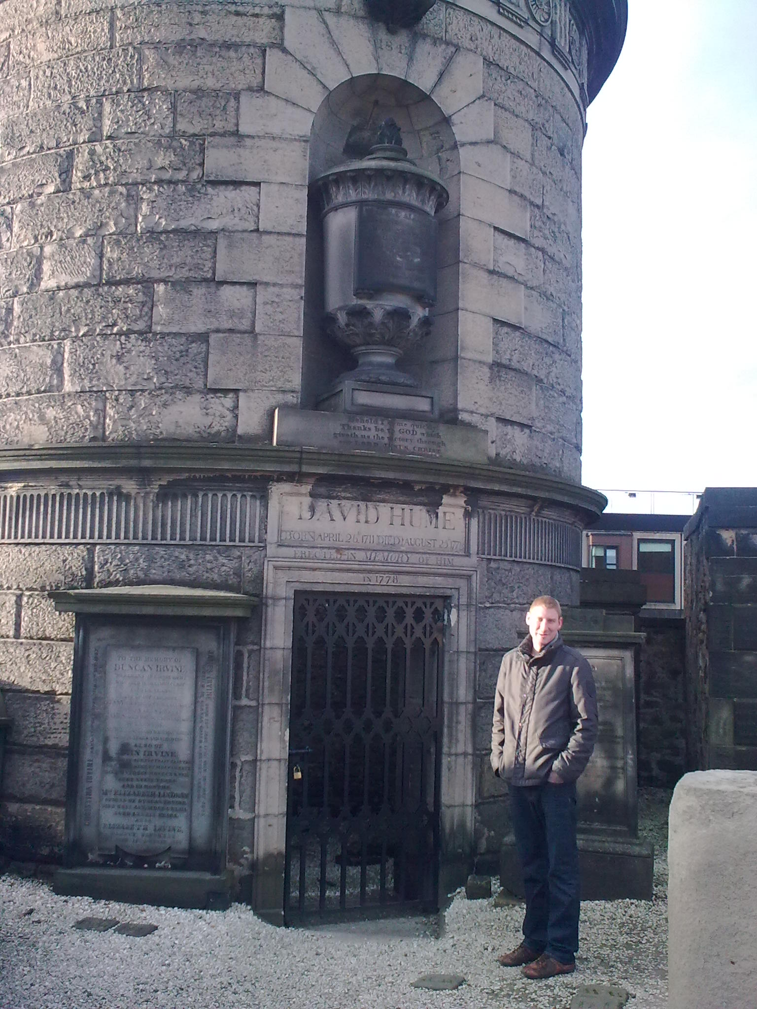 Nick and I went marching on Thursday and called in to the Calton Cemetery where the great David Hume, hero and philosopher of the Enlightenment is resting under a massive memorial that marks the city skyline.