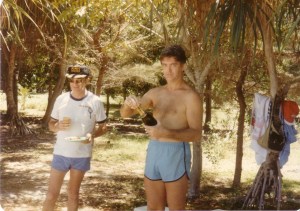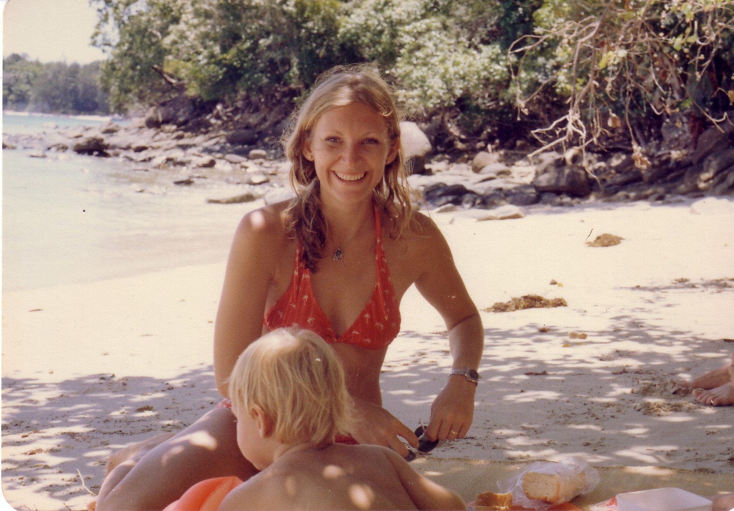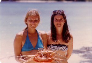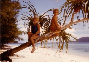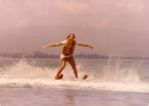 I had forgotten the day Mai learned to water ski. Joyce and I lay on the beach, writing the numbers of her failed attempts into the sand. It got to 31, and Mai’s face was ecstatic when she finally got up and was skiing along. She didn’t notice the horror on the faces of the guys in the boat as a huge fin broke surface behind her. A barracuda!!!!