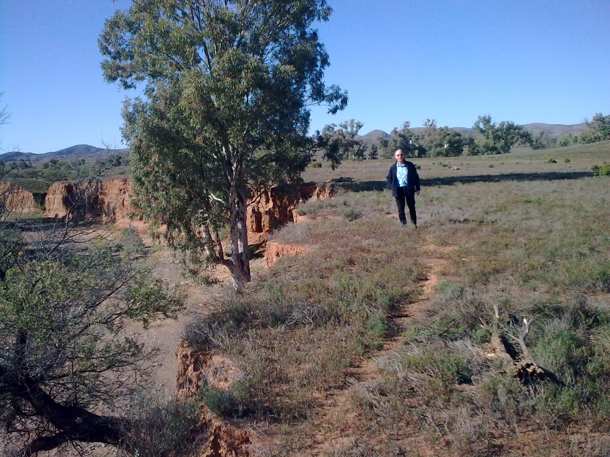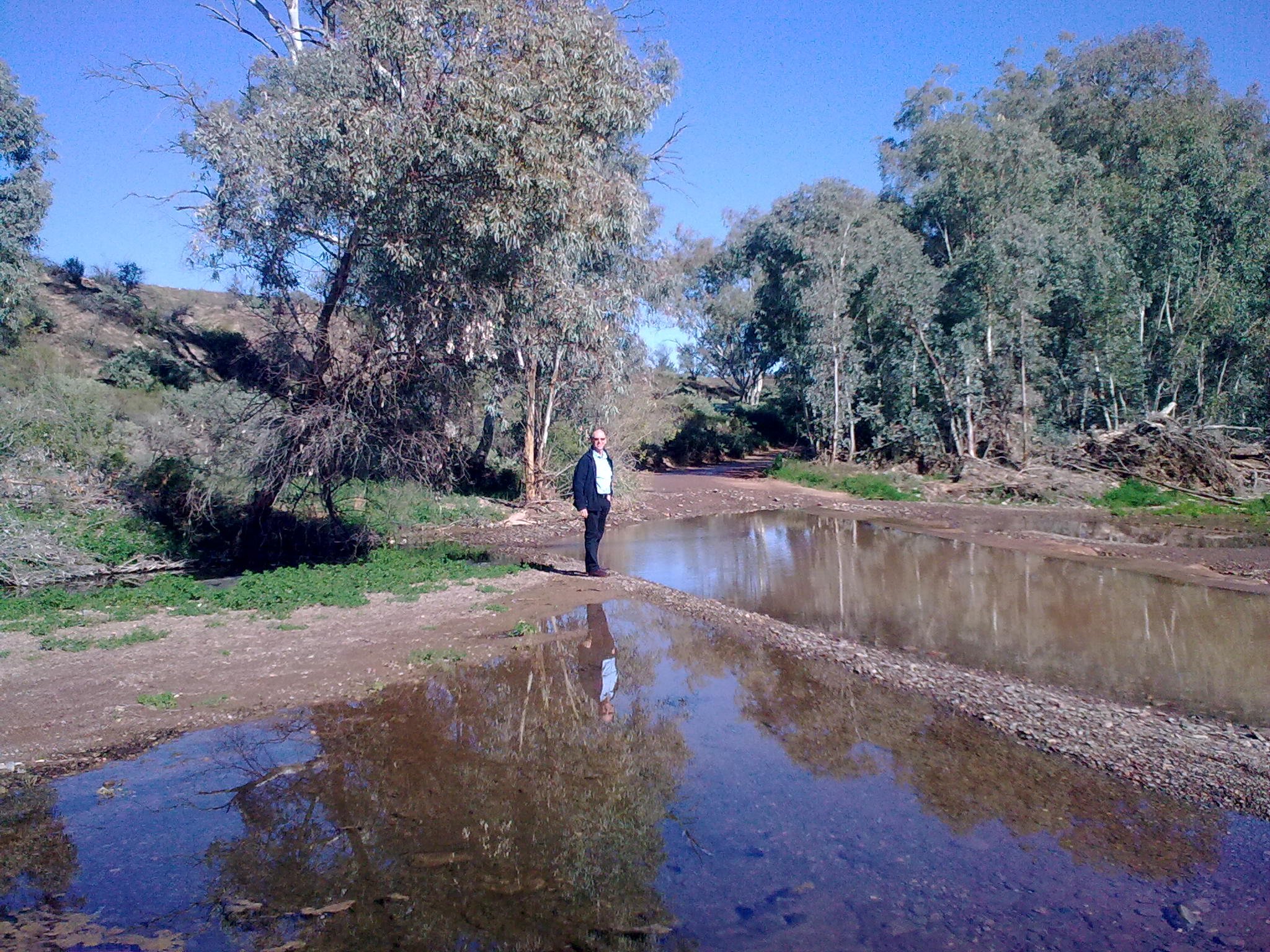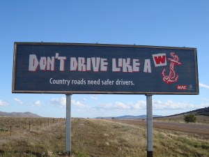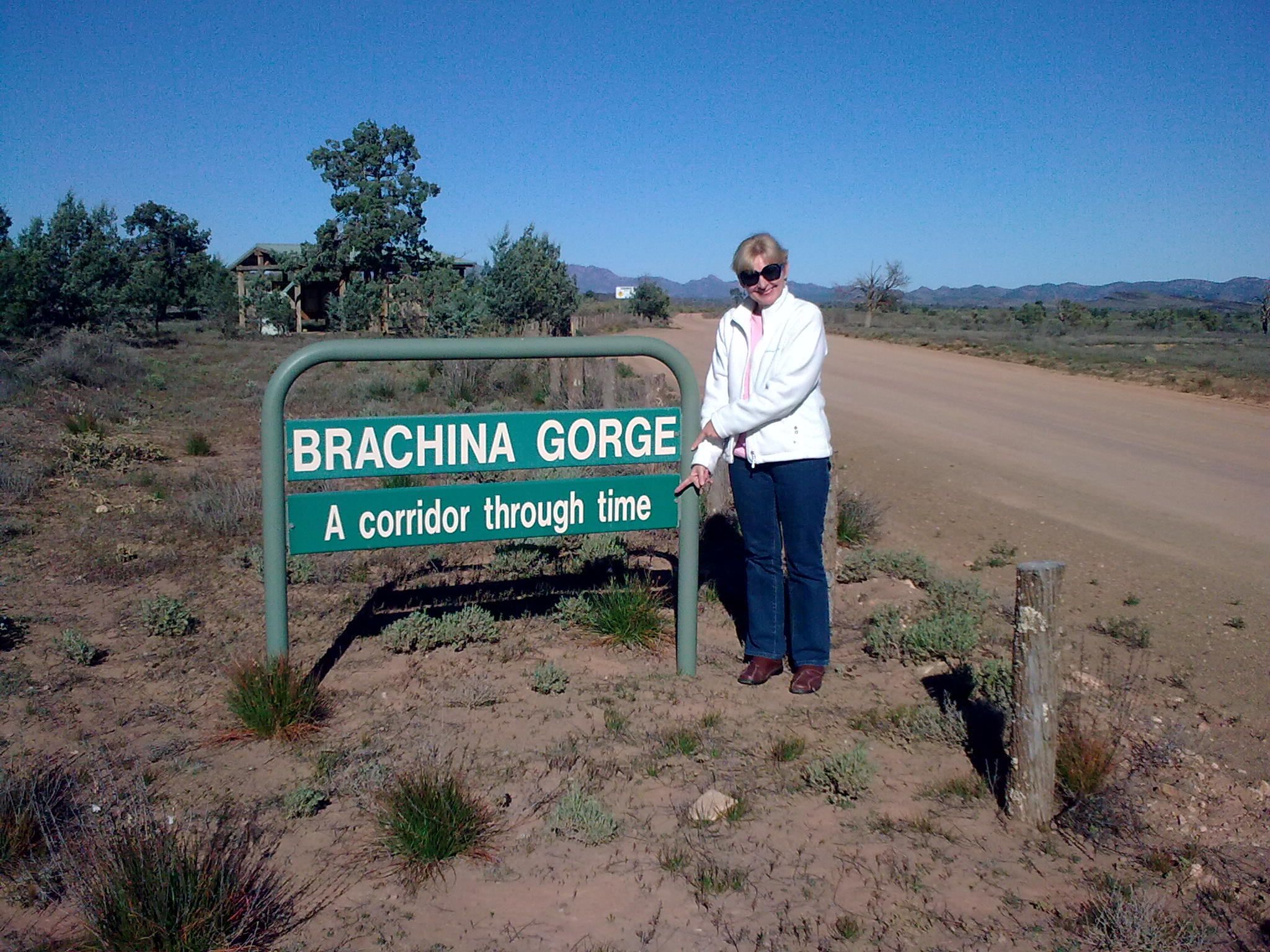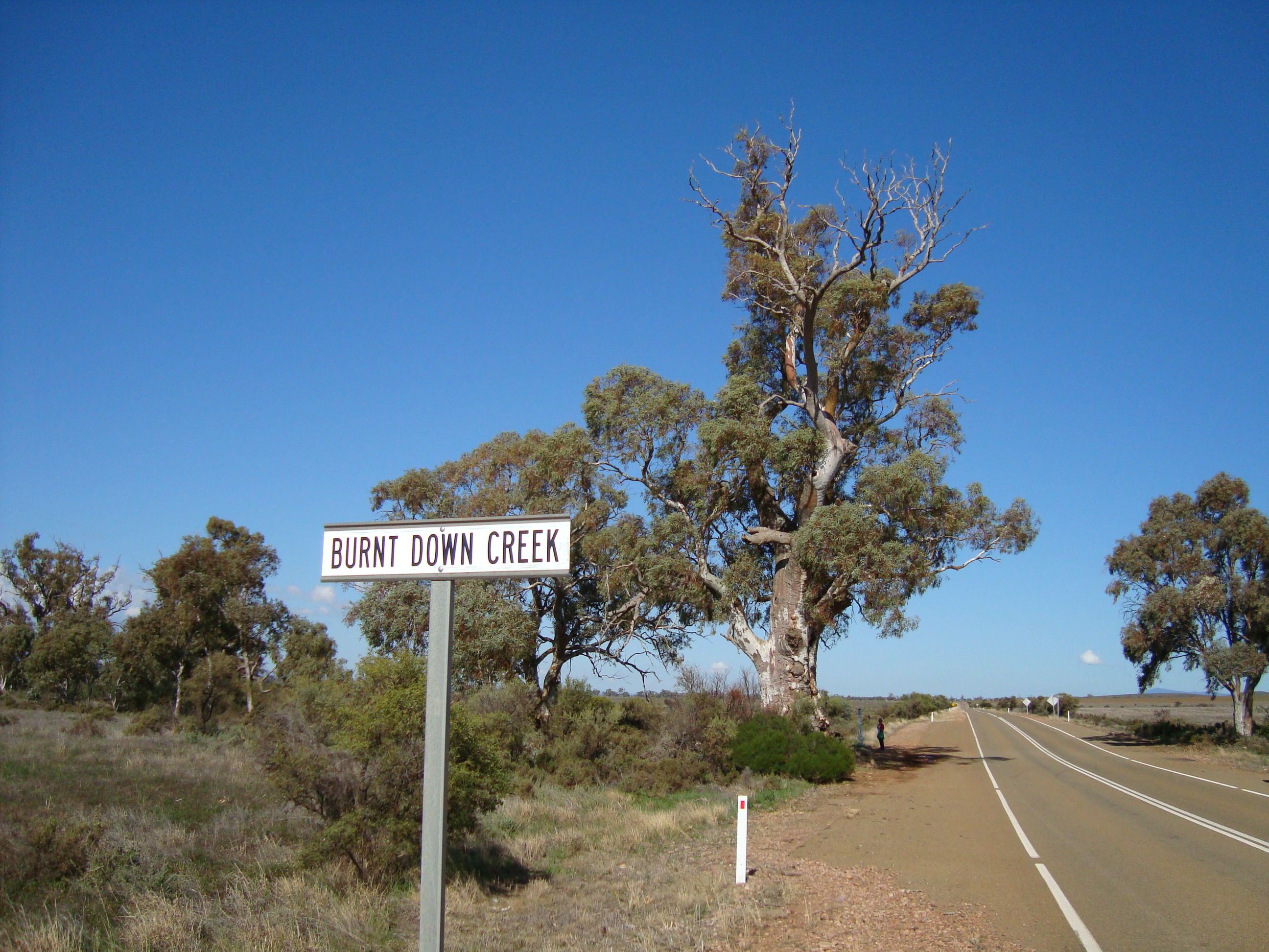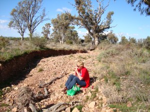 It was so sad to see the carnage in the outback, of kangaroos, foxes and emus lying dead. Apparently they tend to gather for meetings in the road at night and that is when they get hit. I was so freaked driving along these straight fast roads that something might boing out of the scrub and jump on our car. We did see some fabulous birds, a ringneck parakeet flew across our windshield just as bold as brass, but the highlight was a flock of galahs rising up into the air in front of us was quite special. They just rose in a pink cloud and settled into a tree, and instantly it was like looking at a child’s painting….the tree appeared to have a pink lollipop top! We did have a picnic…chose a choice sight, in Burnt out Creek!