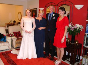 I am now a mother-in-law! And things can’t be too bad as Cathal presented me with a giant bunch of flowers before he whisked his new bride off to Ireland. The scene was quite memorable, the car packed to the gunnels, every single space squashed up with cases, plastic bags, flowers, DRESS, suit, and finally Gerry had to sit in the front wearing her tiara. There was no safe place to store it. The fairy tale end of a lovely wedding!
