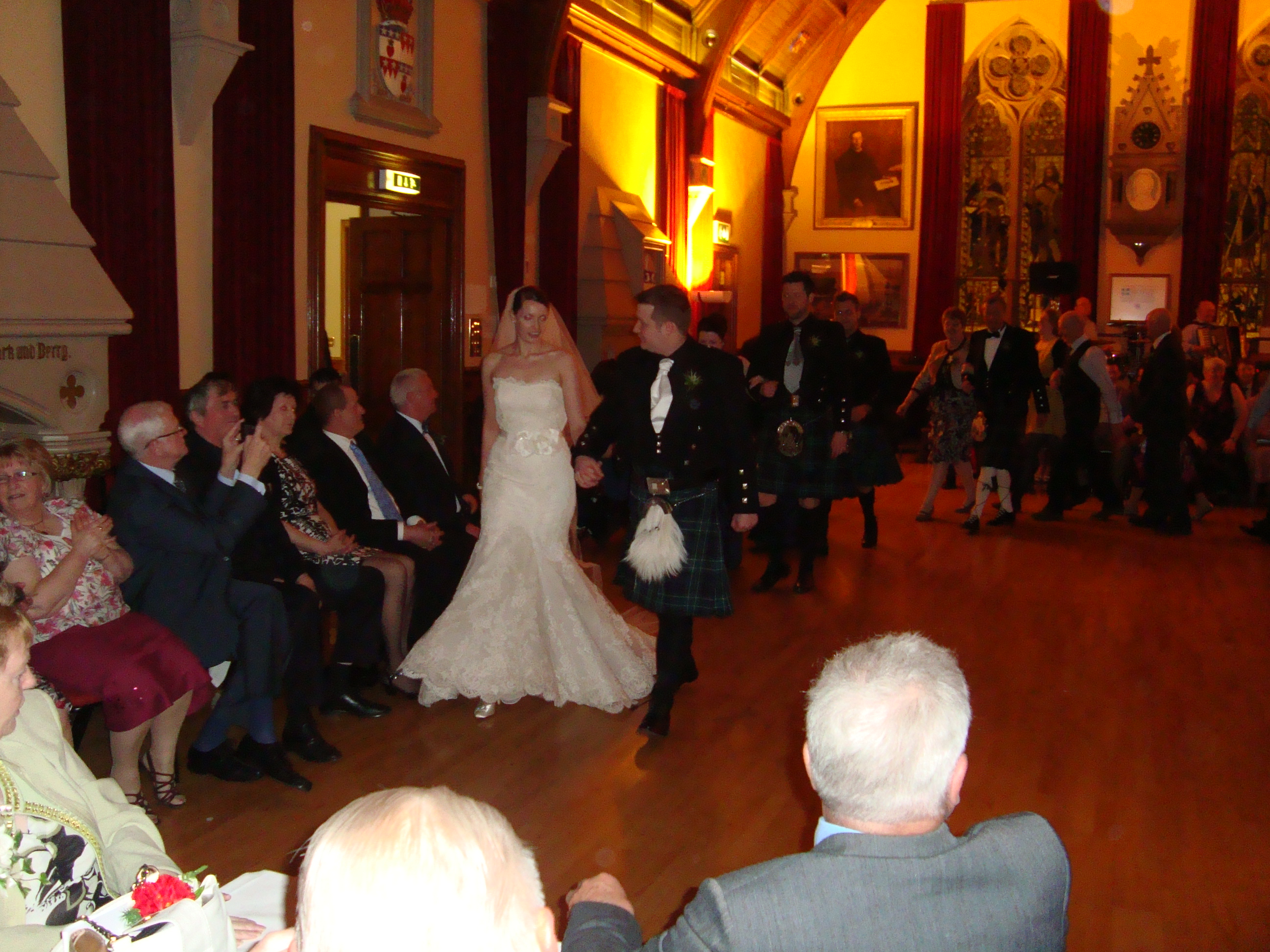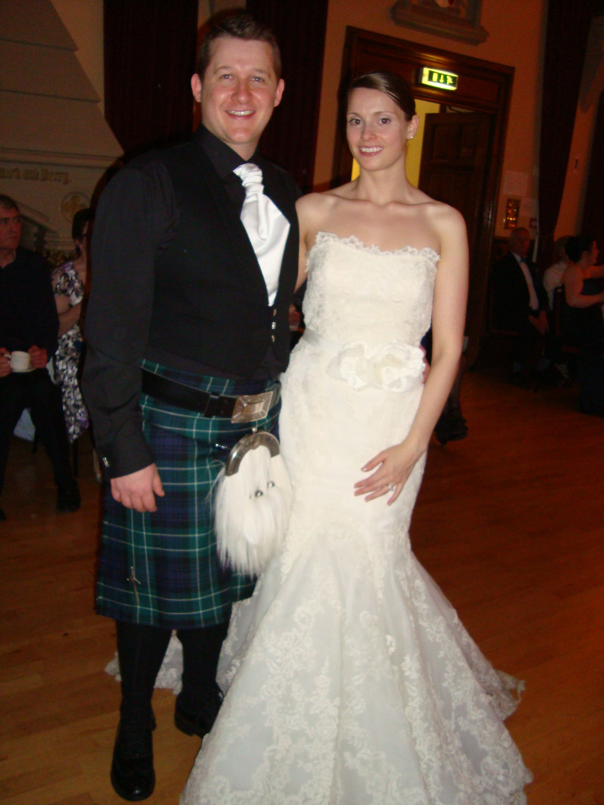 The wedding was beautiful, the bride barely clothed, and I was in awe of her standing outside the church, her arms a lovely shade of tartan. I’m sure she was relieved to get into the warmth of the Town Hall for the reception and revel in central heating. I know we were!