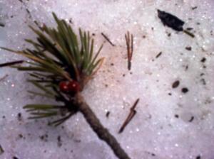 Very oddly’ as my leg disappeared down a hole’ I came face to face with a branch on which two ladybirds were mating!