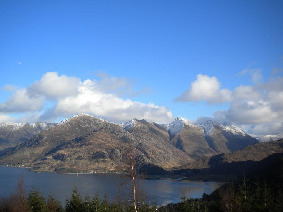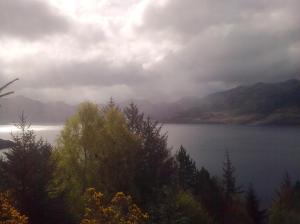 The rain followed us over the hills to the West Coast, and then it cleared and we were stunned by the beauty of the Cluny Hills, and the Five Sisters of Kintail