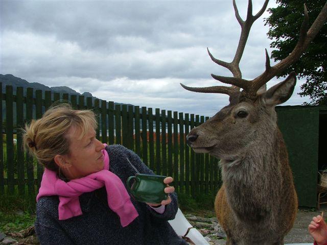 It turns out the stag was a pet, rescued when found in Arnisdale, starving and like a skeleton. Willie the Post had nursed him back to health but he grew to be a menace, worse than a dog as he was always on the lookout for snacks and hand outs. In the rutting season he would go off to the hill, but Willie painted a big yellow dot on his rump so that stalkers wouldn’t shoot him by mistake. Quite different from his namesake, I’m sure Obama’s crowd would have appreciated a yellow dot on their Bin Laden!