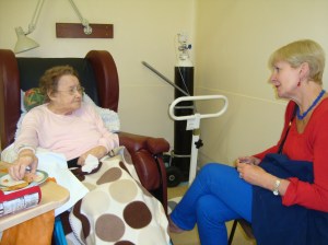 She was fine, so much more cheery than last time, inspite of being unable to move about and being confined to hospital.