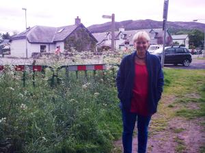 We put some flowers on my mother and granny’s graves in the desolate cemetery just outside Kingussie … The grey stone dyke surrounding this last place of rest is quite a talking point. People say, ‘well it won’t be long till I’m over the dyke.’ I suppose that is where I will end up one day. It’s a lonely spot. John and I were quite bemused by the family of oyster catchers leaping about and squawking with their yellow beaks. It seemed so strange to see them so far inland.