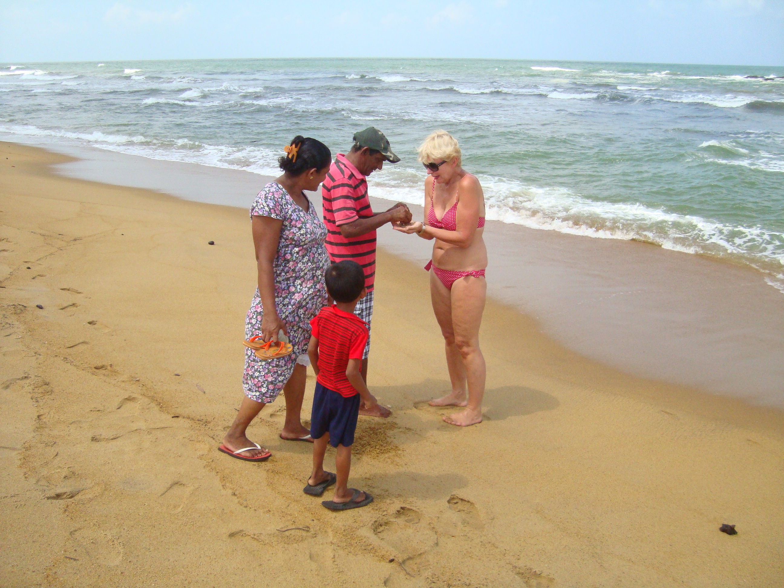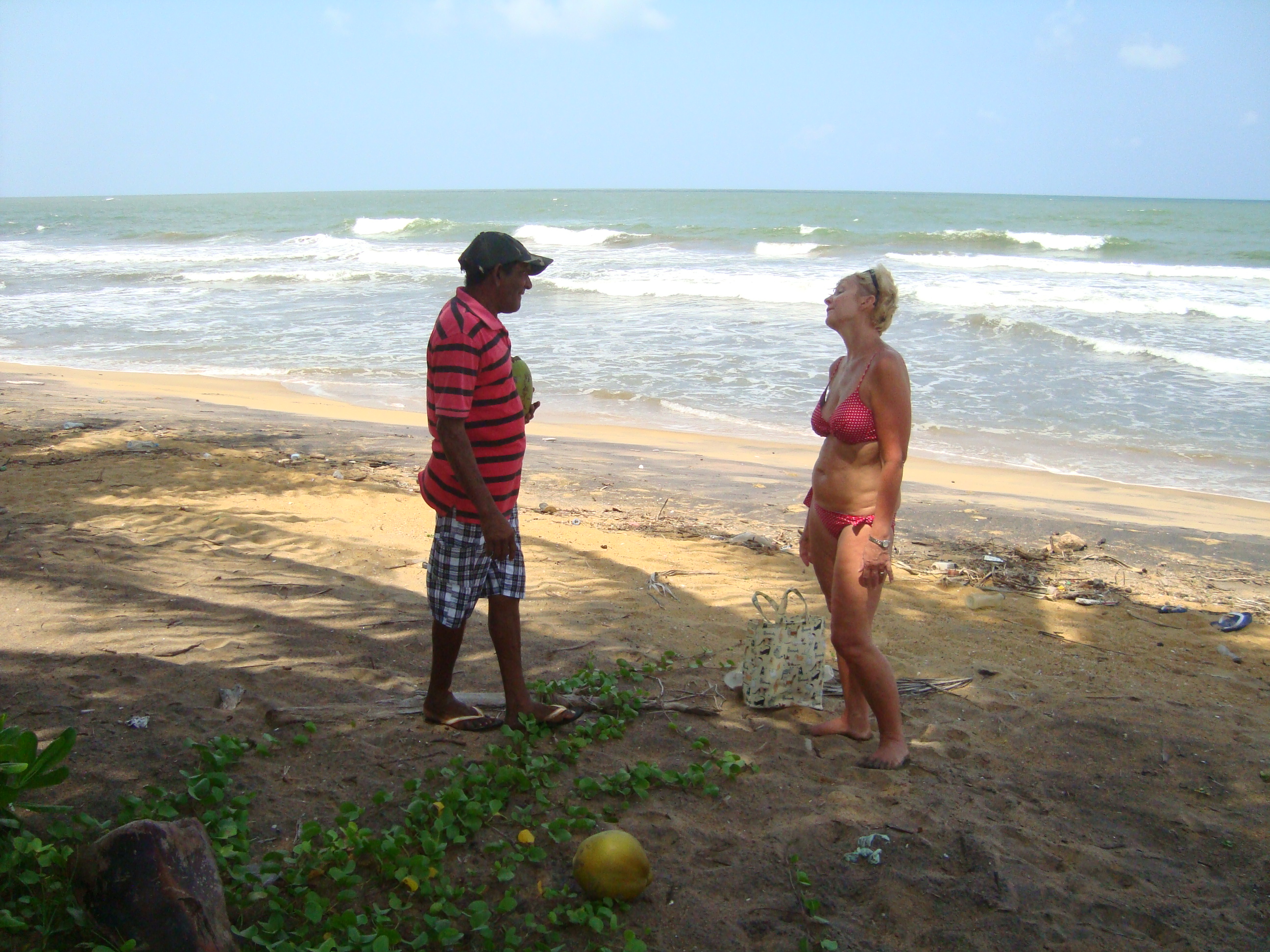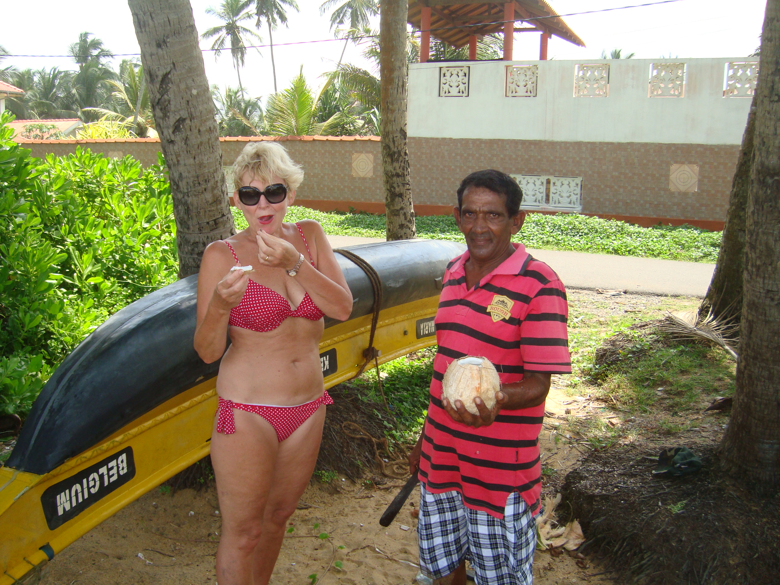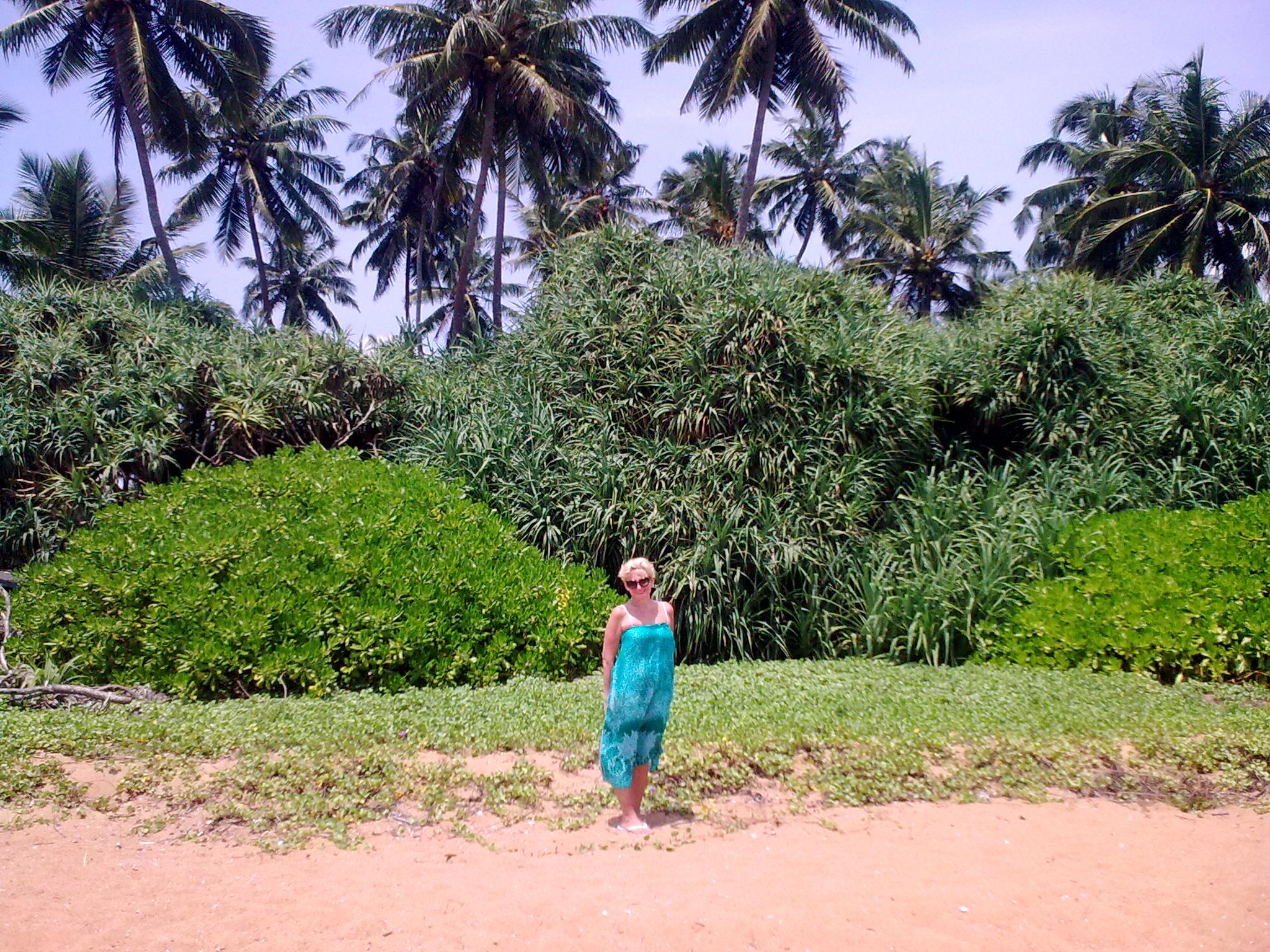 From the aesthetic creams and sandy tones of Doha, where the skyscrapers compete in world architectural designs, we landed in Sri Lanka. There is little need for man-made edifices to adorn the landscape in this beautiful island, for the colours and patterns of nature assault the eyes whichever way you turn. The jungles are full of lianas, palms, fronds, and citrus greens all hot and just dripping with moisture. Flowers as big as hand-spans intersperse with creepers and lalang grass. All the way from Colombo to Kalutara we passed a continuous ribbon of shops and dwellings. It is said that a chicken could walk along the roofs of the houses without once touching the ground. I didn’t realise we were driving for over an hour parallel to the beach until suddenly we turned and we tootled down a narrow winding alleyway and WOW there it was, the sand, the sea, the palms… immediate, on our doorstep, and we were booked in for a week!