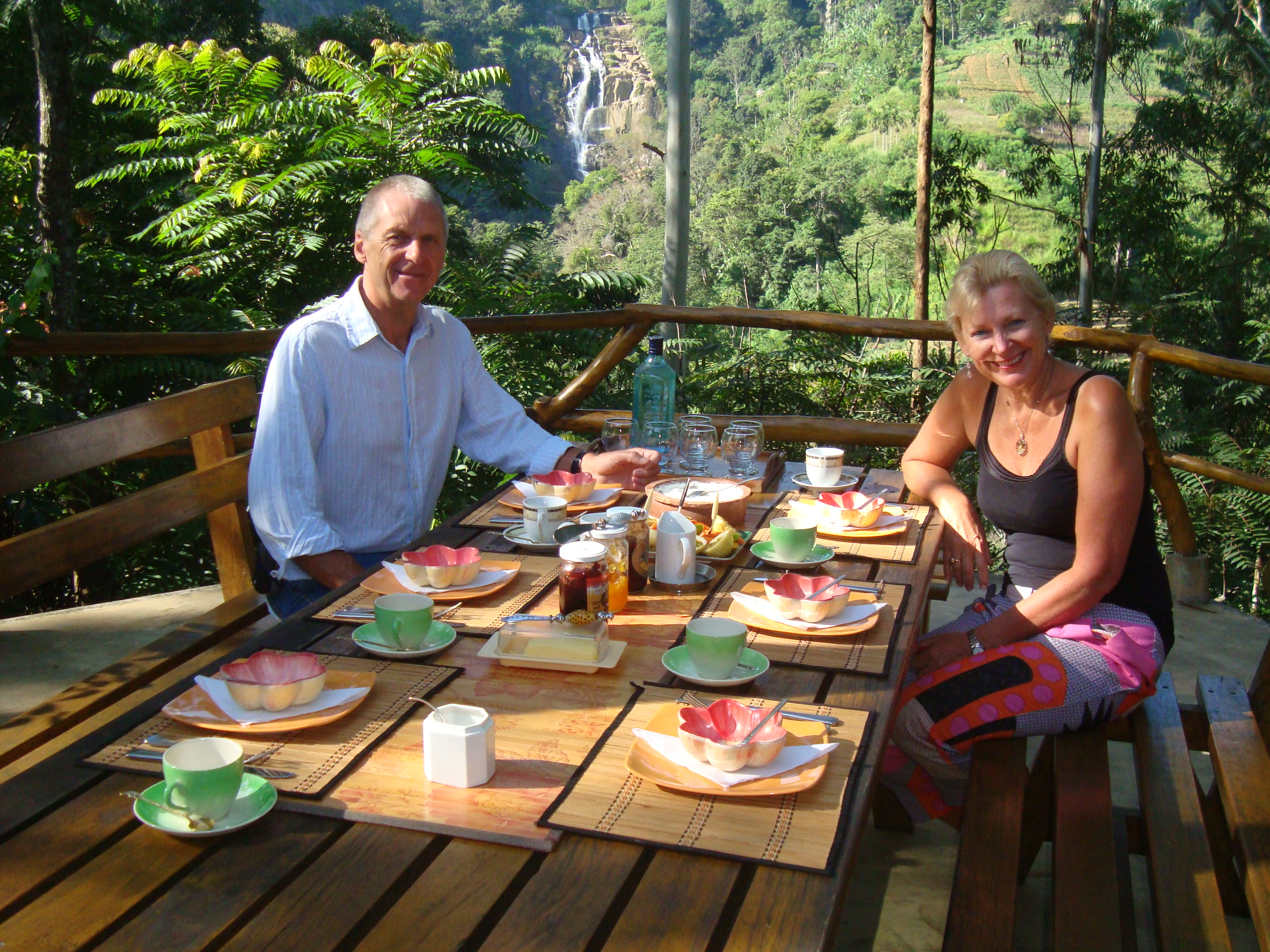I got up that first morning and went out on the terrace to look at the waterfalls and maybe get a glimpse of a kingfisher or a monkey…When I turned round; I found 2 monkeys sitting on the roof staring at me! I got quite a fright.