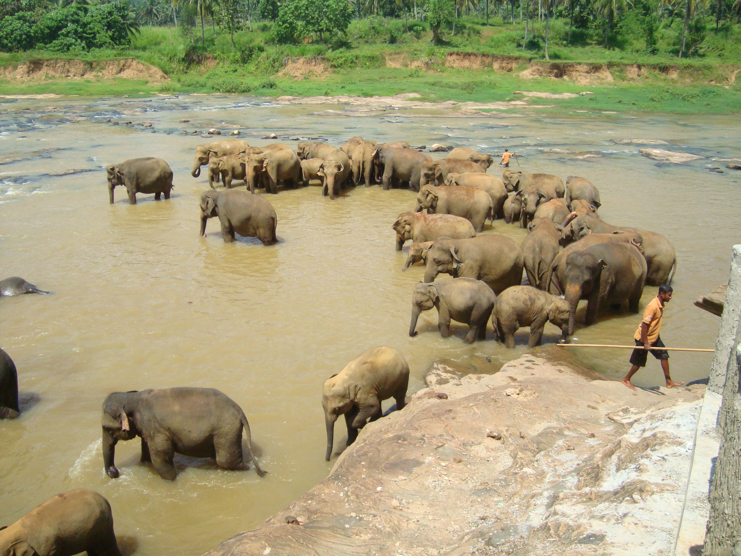 We visited the elephant orphanage, where we saw about 50 elephants having their 12 o’clock dip in the shallow river. It was so natural, babies cavorted about, teenagers were feeling horny, mums were looking bored, and there were a couple heavily in chains. These are elephants that have been injured in the wild, and need treatment. They are kept for a while, then released, but they need to be chained as they are a risk to humans. I kept my distance. We had already had one scrape with death on this holiday…didn’t fancy being trampled.