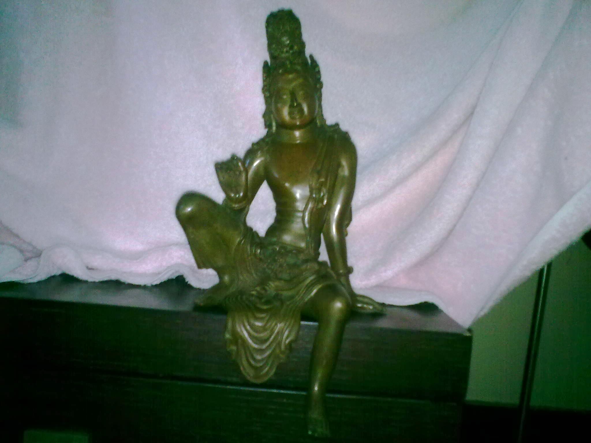 We were so rejuvenated after the storm and I had given up worrying about my sodden long orange skirt as we waded our way through the rivers that, only an hour ago, were the streets. It was by sheer luck that we found the Buddha that we had been searching for. A bronze image of Avalokitesvara in an ‘at ease’ pose. We paid a small fortune for him, and John mightily carried him back to the hotel.