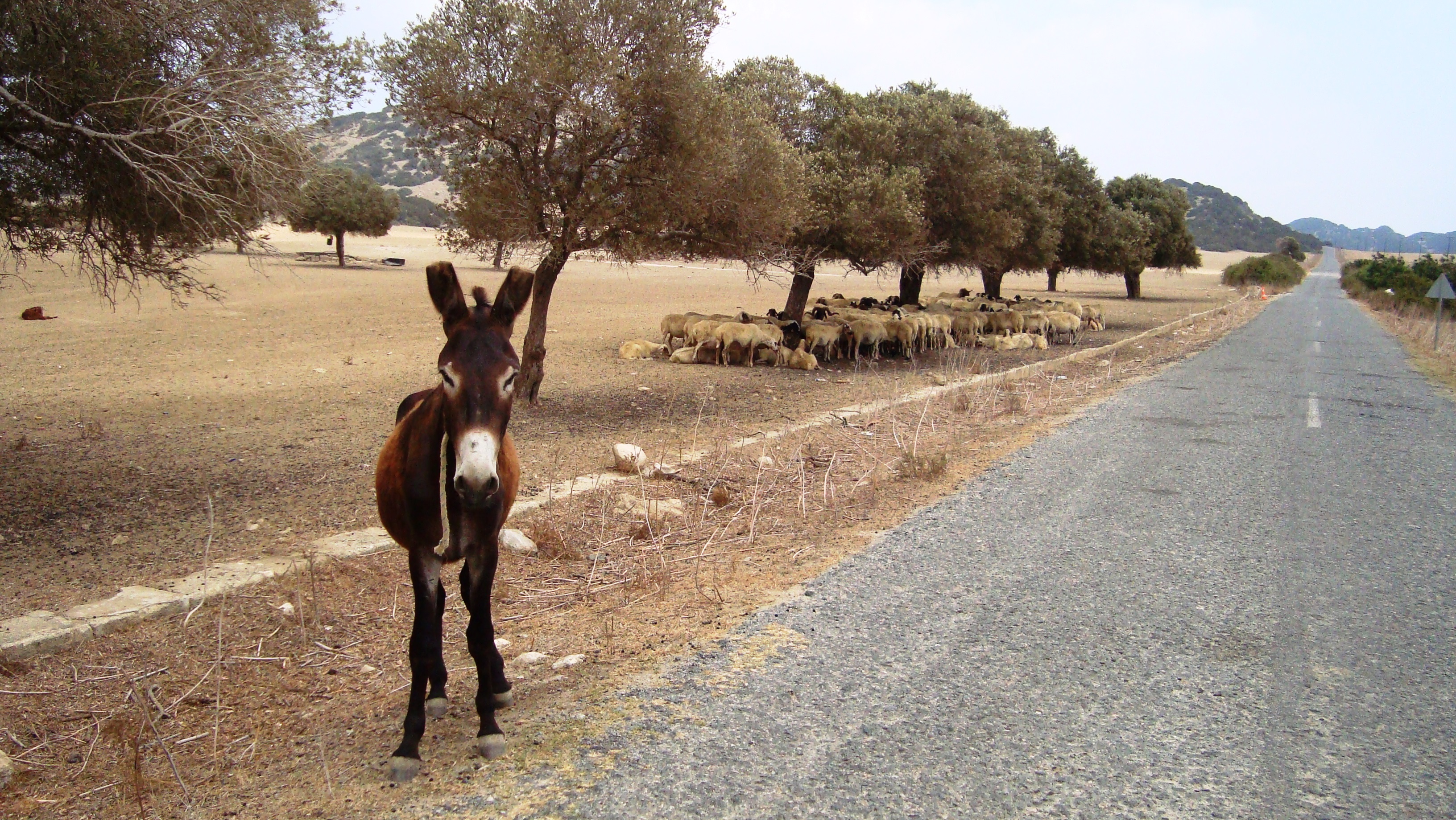 Later it was all so biblical as we came across the sheep and donkeys, huddled under an old olive tree.