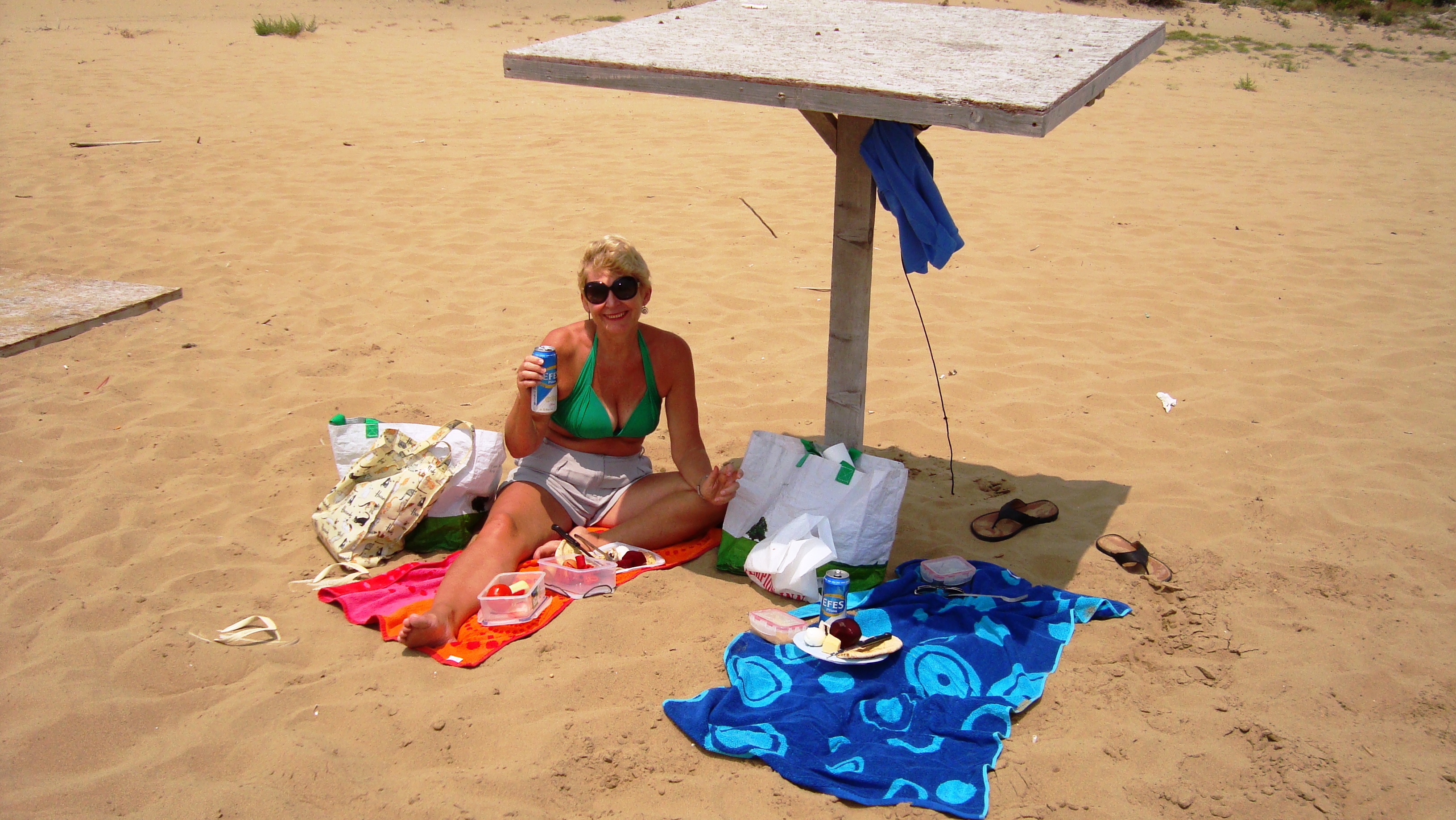 Each day we revisited our old haunts that we saw first in winter, in spring, and then in autumn, now we saw them in the full sun-baked glory of summer. The golden sands beach on the Karpaz was beautiful, and we found strange table-like sunshade structures to sit under to eat our beetroot and hummus and what not. We were a little cautious when we saw the warning sign, but thankfully we could relax and just enjoy the day.