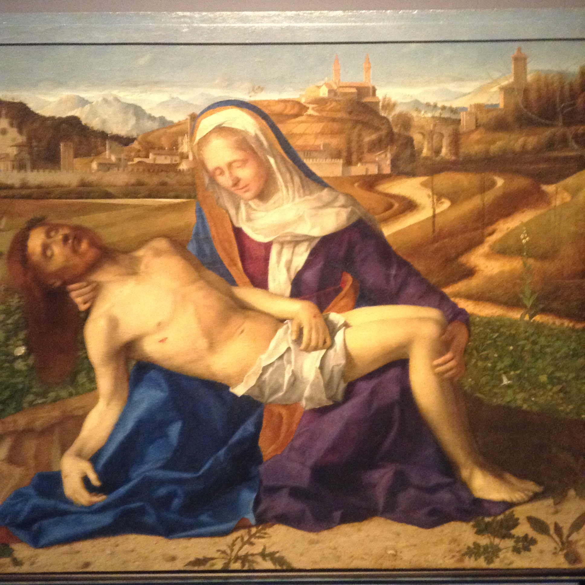 The painting of Mary holding her infant, with her eyes filling with tears as though she knows what is to come, the child’s arm flopped down in sleep is so evocative, but then you walk into the next room and there is Bellini’s Pieta, and the pose is exactly the same, but this time Mary holds her dead son. The hair on the back of my neck prickled and I could feel the tears.