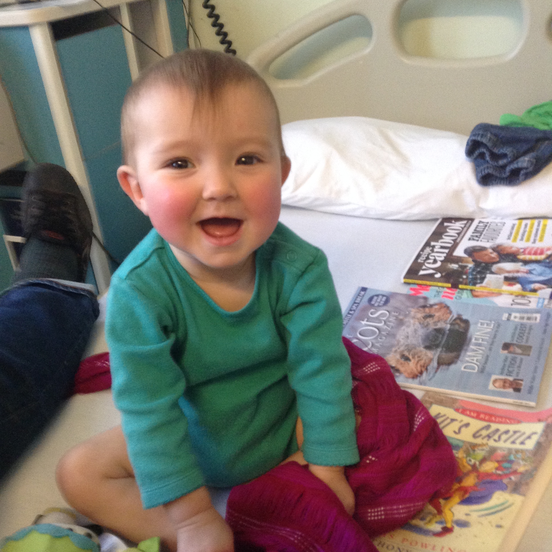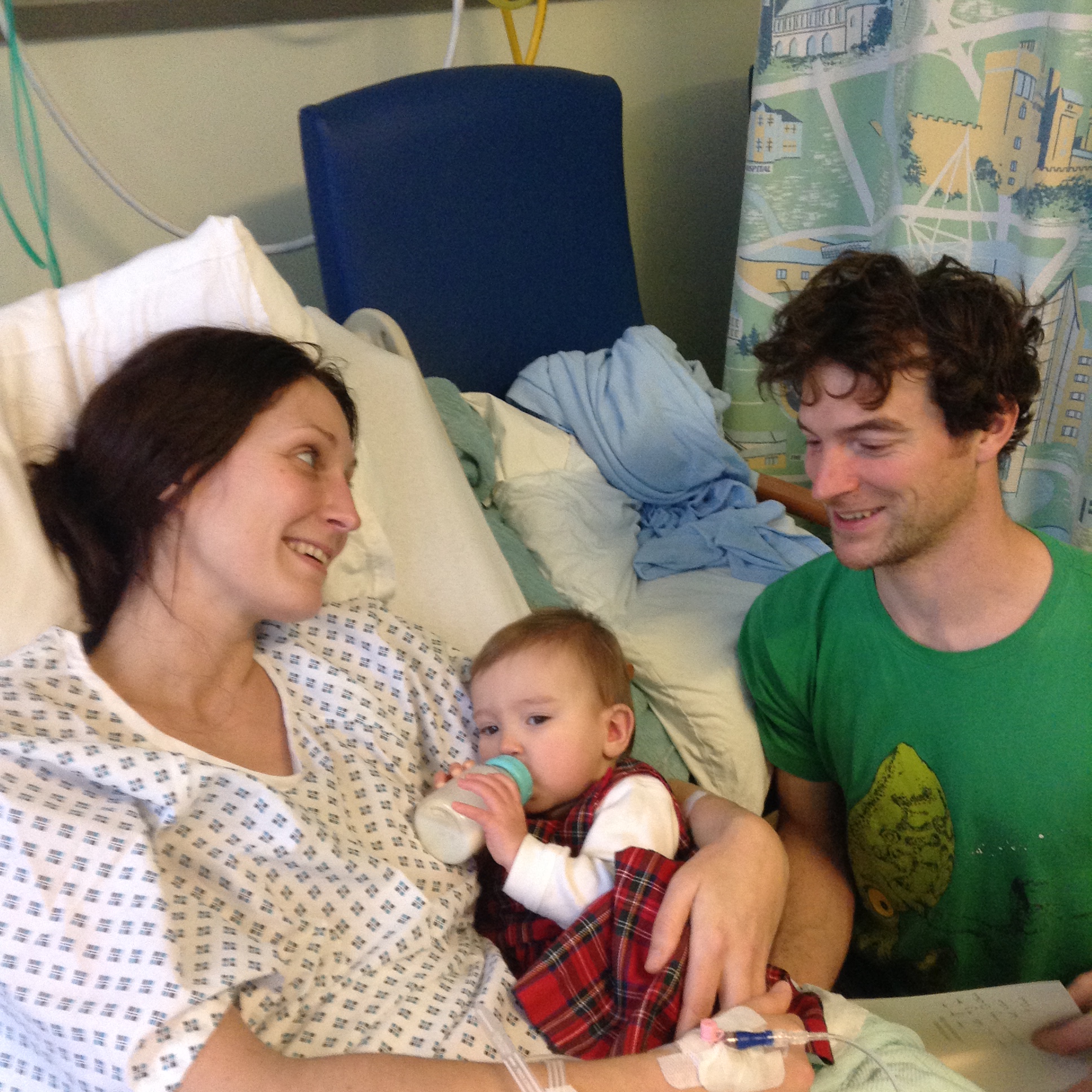 Our small world here has been like a scene from a hospital drama. First John’s op developed complications and he had to be readmitted with an infection and was put in a weird isolation room here in the Western Hospital, Edinburgh. He is now recovered and that is good. Then Natasha was suddenly admitted to hospital in Cardiff with appendicitis, which had an abscess which burst, as well as the ruptured appendix and a tear on the bowel, so it was a nasty operation. She was very ill and I flew down to take care of Bonnie. Leo is great and coping well so I am back home to cook the meal that should have been for all of us, but now only for ourselves and Gerry and Cathal, which I know will be good and we shall have a good day. But my thoughts are with Tasha at this time.
