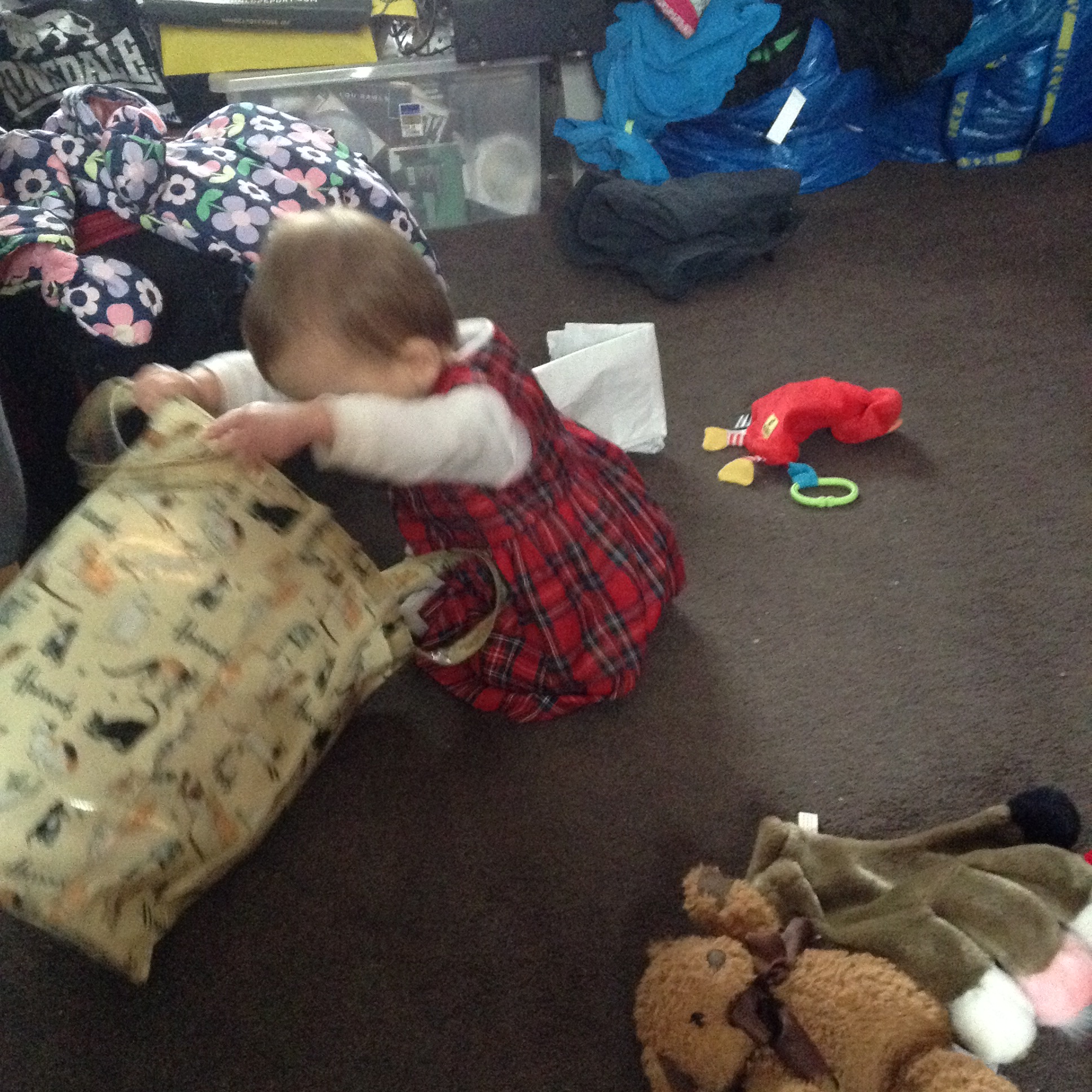 and here she is discovering the joys of Granny’s bag!
