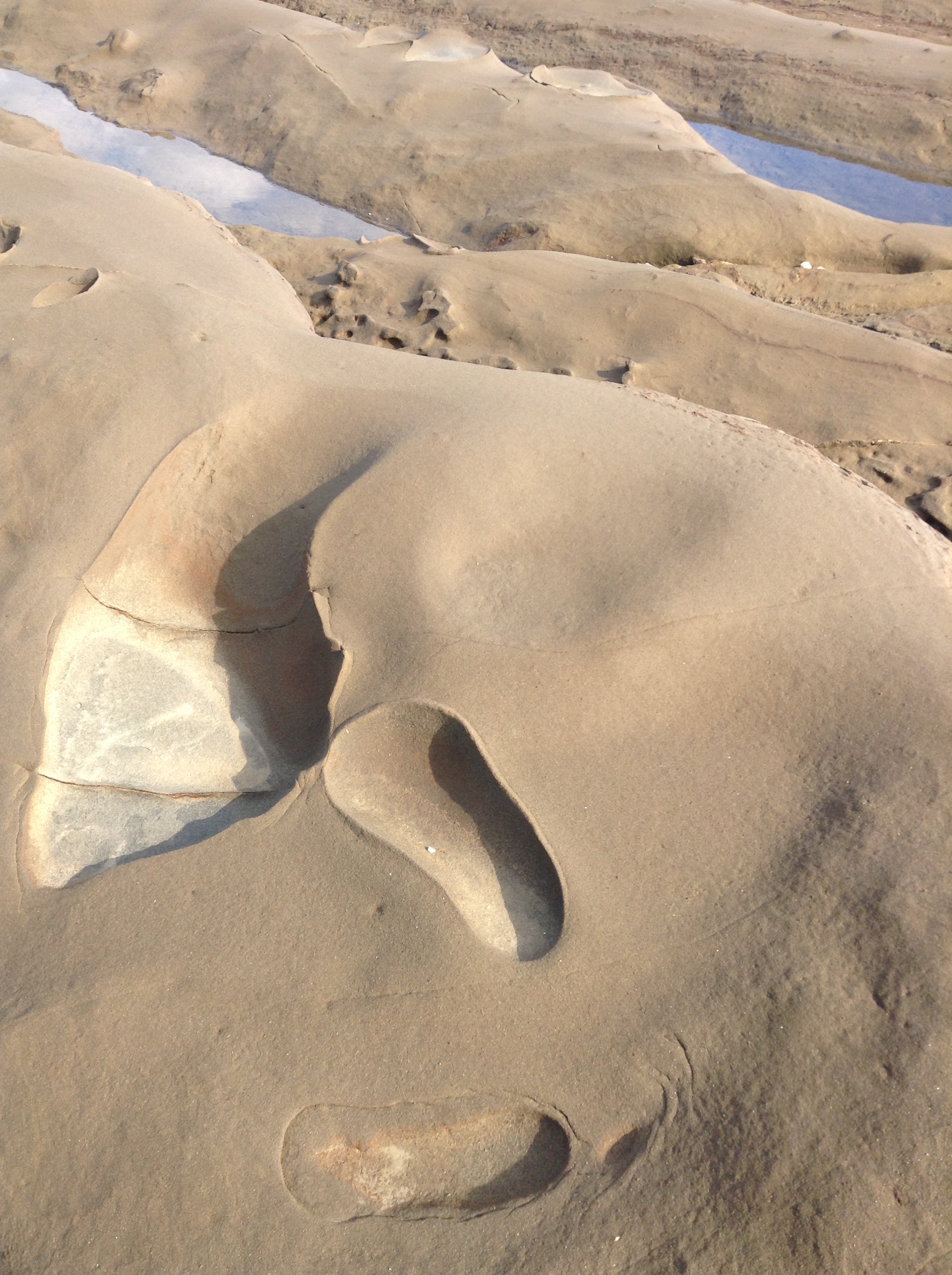 Hard sand that had solidified, and made shapes from the swirling of rocks over millions of years. There were even two holes that resembled foot prints. Perhaps they were the Holy forms of St Andrew himself.