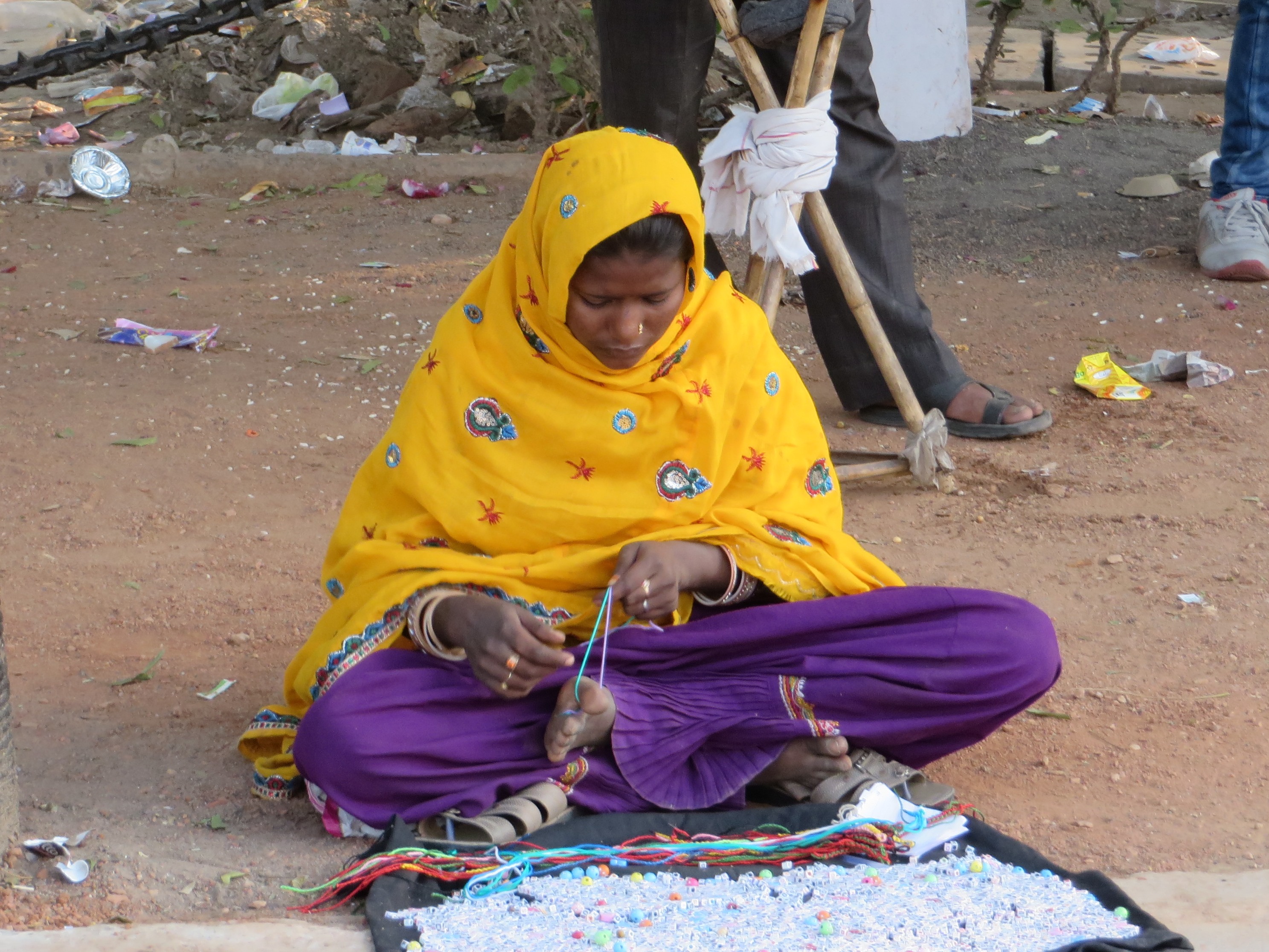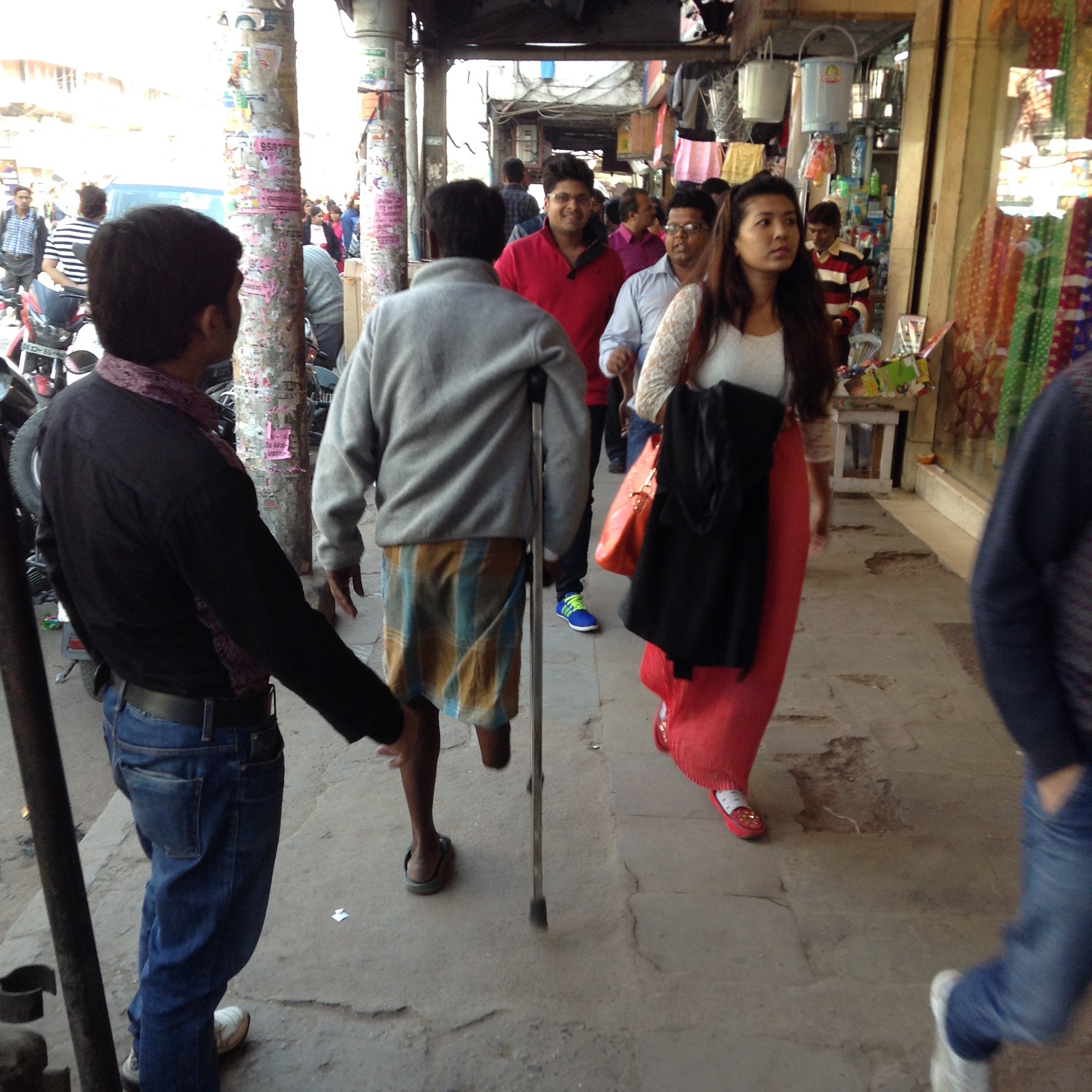 A one-legged man attached himself to John and me, giving his services as guide through the gold, silver and sari streets for 50p.