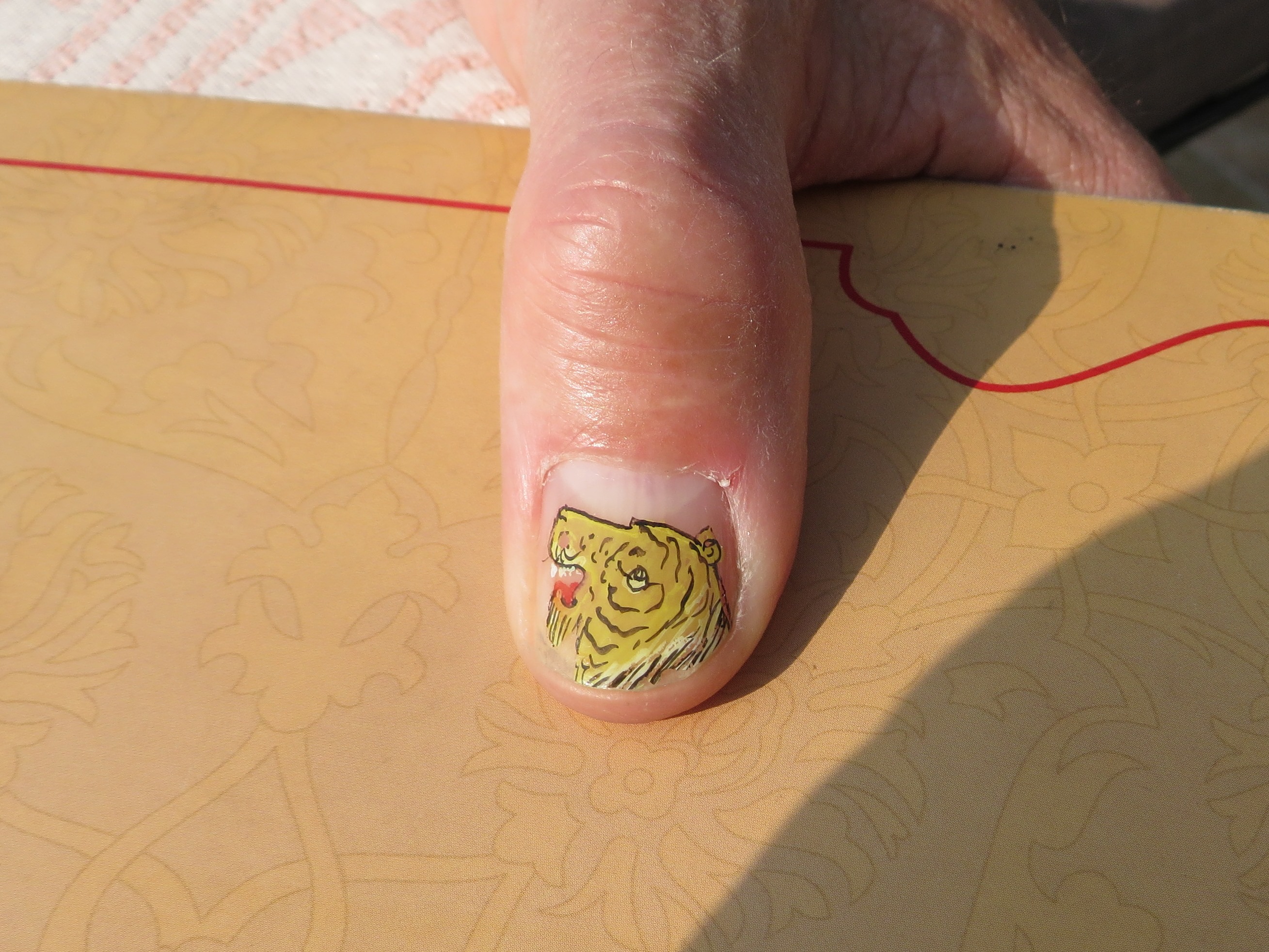 And today we are going on a two hour camel safari. It is here that the biggest and most famous camel fairs in Rajahsthan are held. I might try and pull out one of my camel’s eyelashes for future paint brushes I might make. In days gone by the Sultans of Udaipur (where we have just come from) had painters commissioned to record all their grand feats, rather like photographers nowadays. They would have tiger hunting and elephant fights recorded in minute detail. Also all the various battles were painted (with camel eyelash brushes!) showing hundreds of soldiers, each with an individual expression on their tiny faces, and mountains and blades of grass all minute and perfect. Fascinating to look at. I had a tiny masterpiece of the Taj Mahal painted on my fingernail. John had a tiger’s head. These guys have very good eyesight!