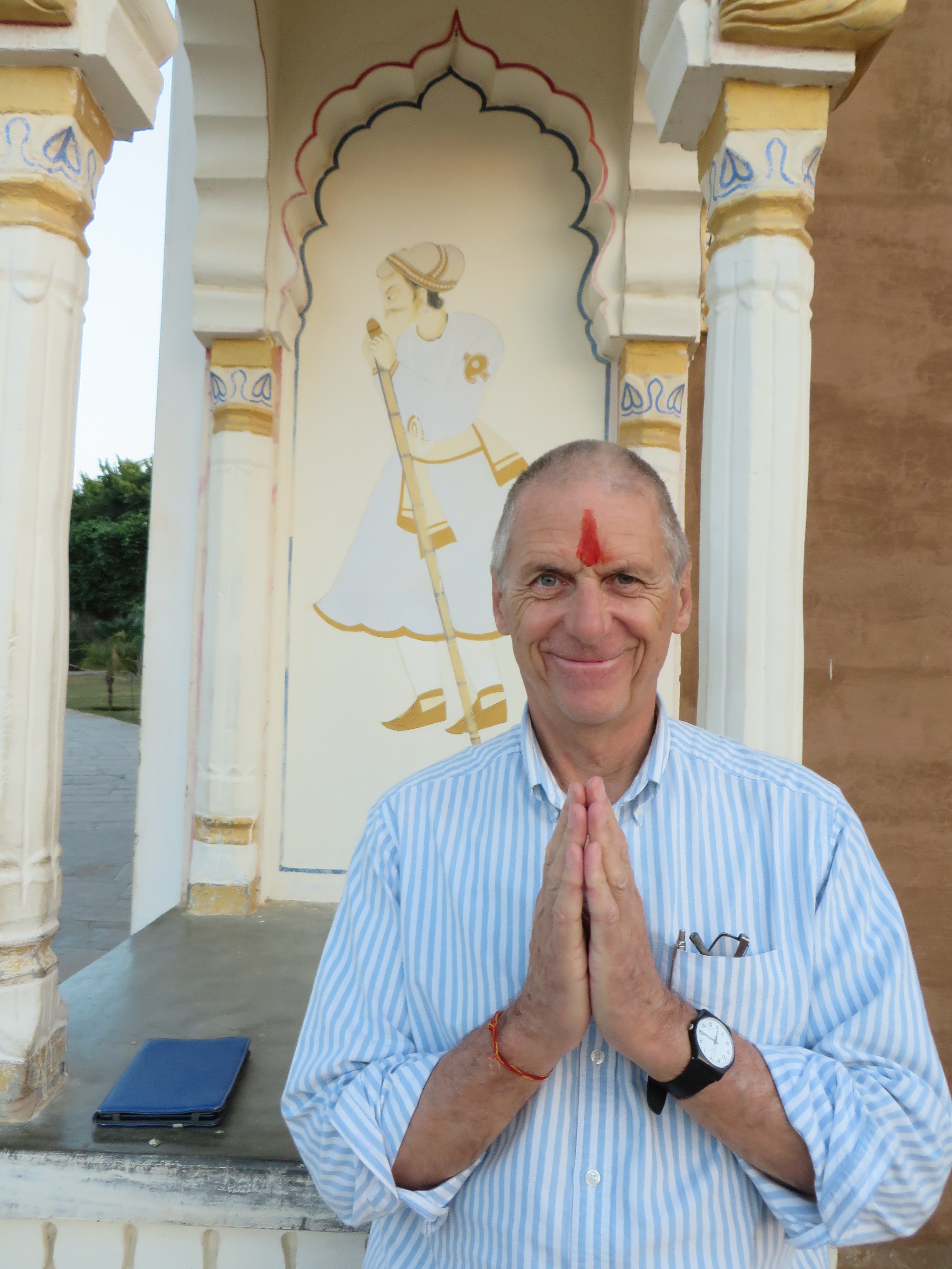 Yesterday we were blessed in a special ceremony by a Hindu priest and anointed with water from the lake which holds the bones of Mahatma and Indira Ghandi and many more worthy souls I am sure.