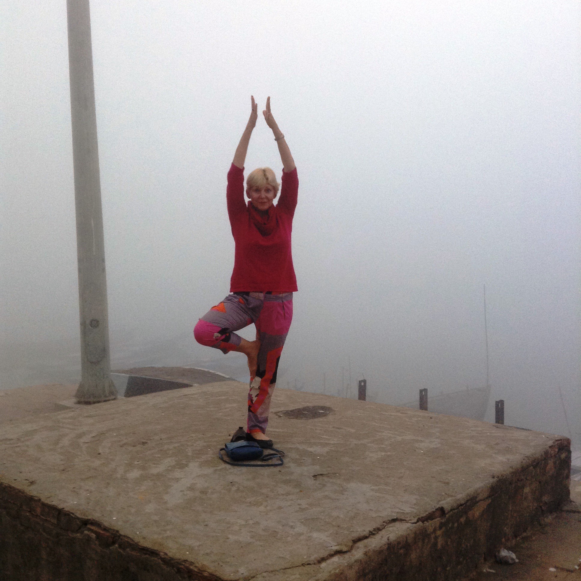 We went down to the ghats in the morning but the fog was thick so I took the opportunity to do some yoga on a holy plinth,