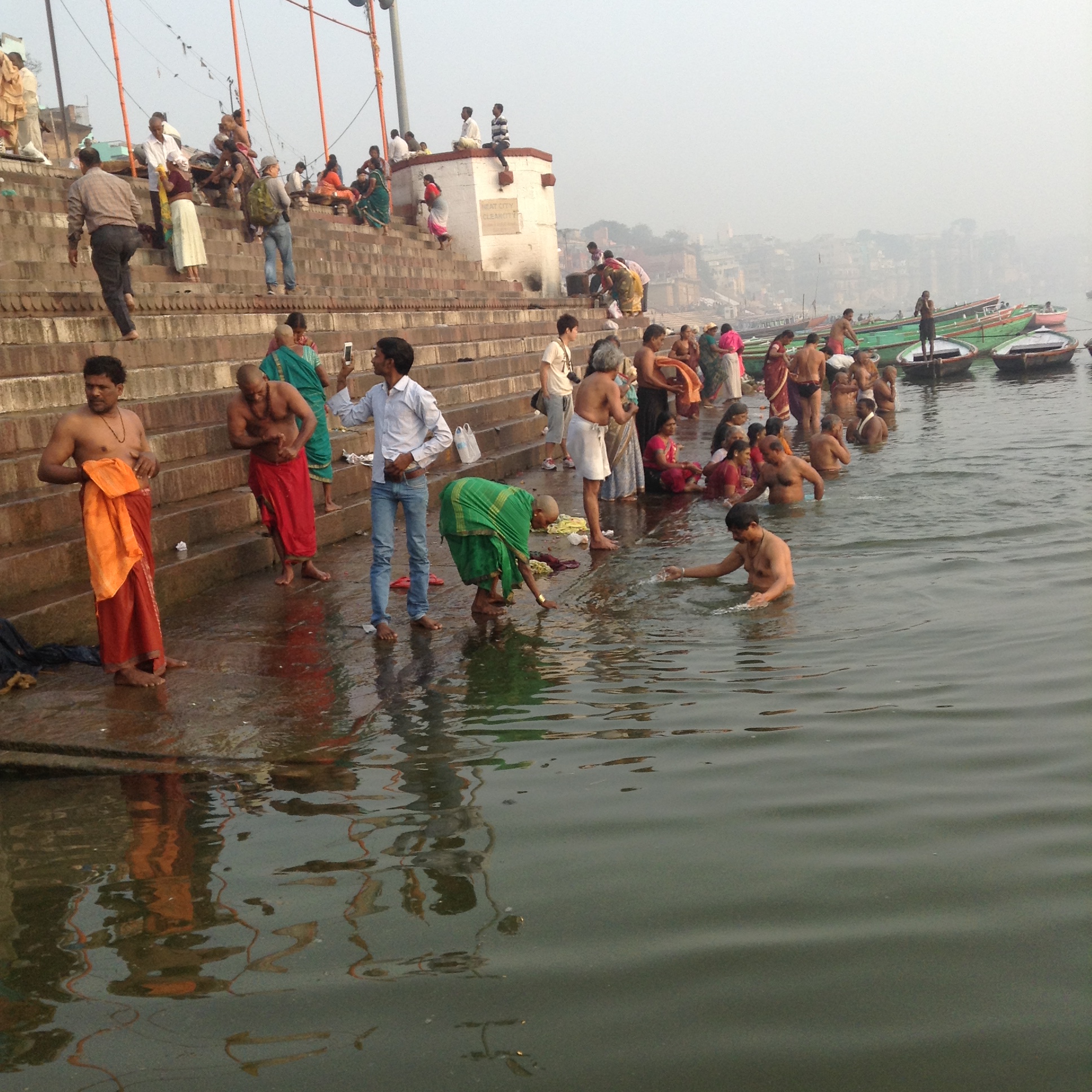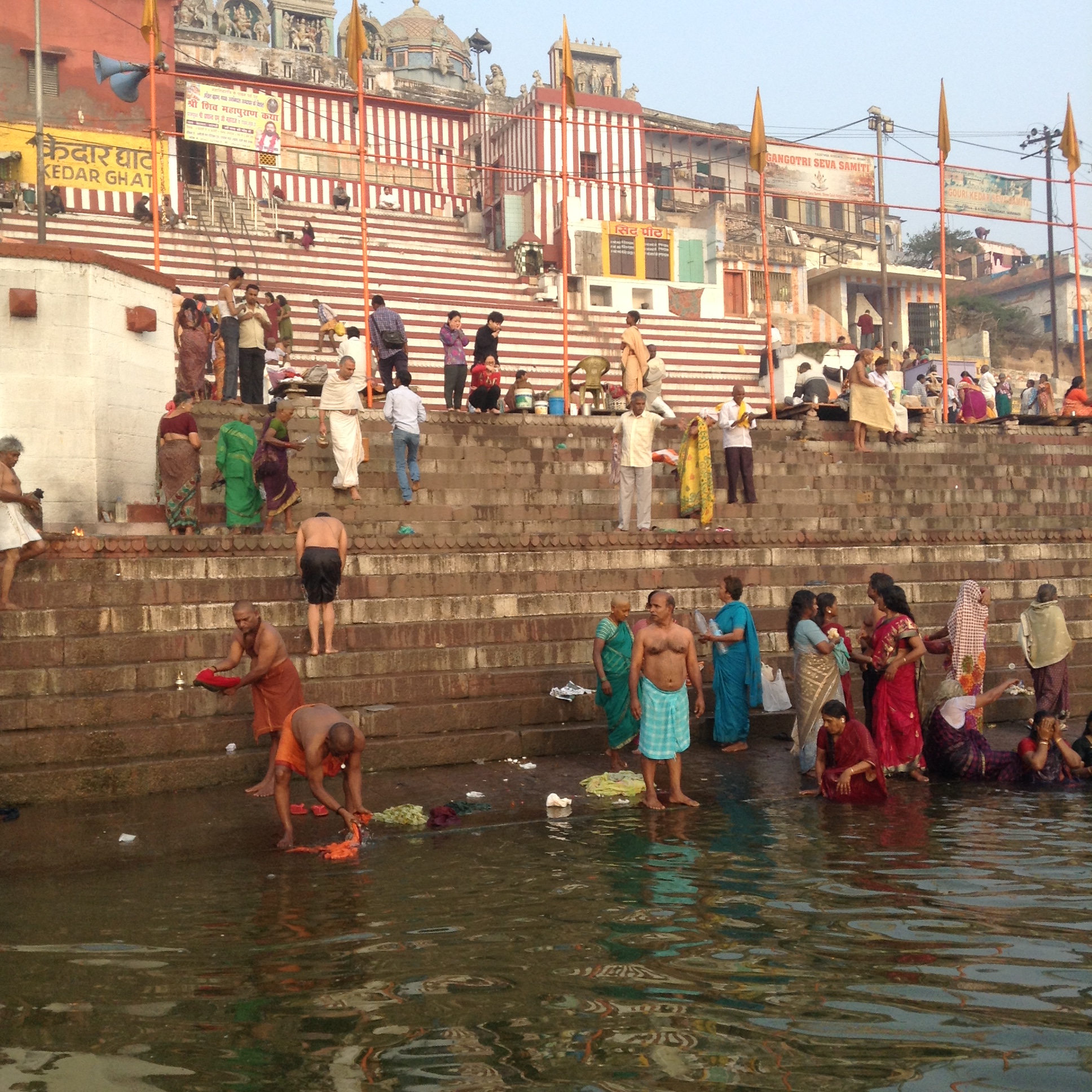 and people come and perform the puja ceremony, where they wash and commune with the river.