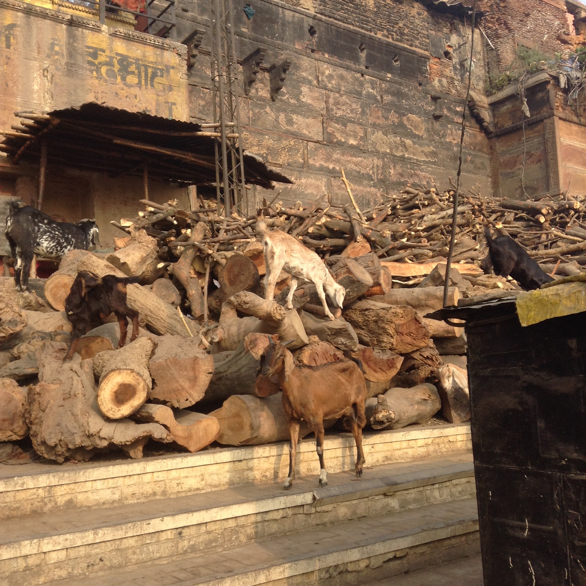 First they are dunked in the river to absolve all sin, then they are covered in ghee to make them burn, then finally they are put in the pile of wood (about 800kg of wood is used per cremation),