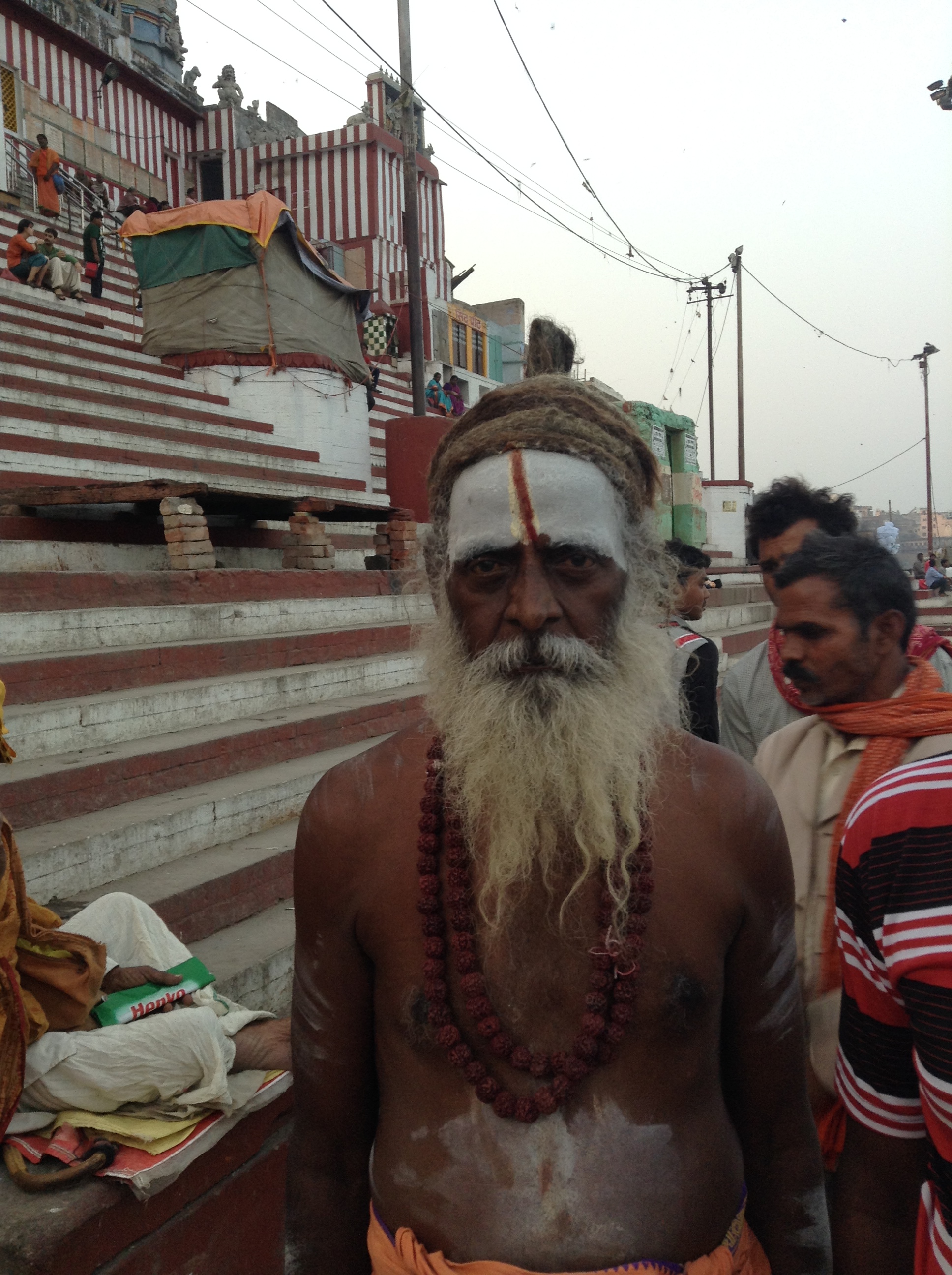 Holy men covered in ash (some human) and totally naked were walking about, also some with dreadlocks; orange robes looked at me with eyes as cold and dead as a reptile. It was a little disquieting.