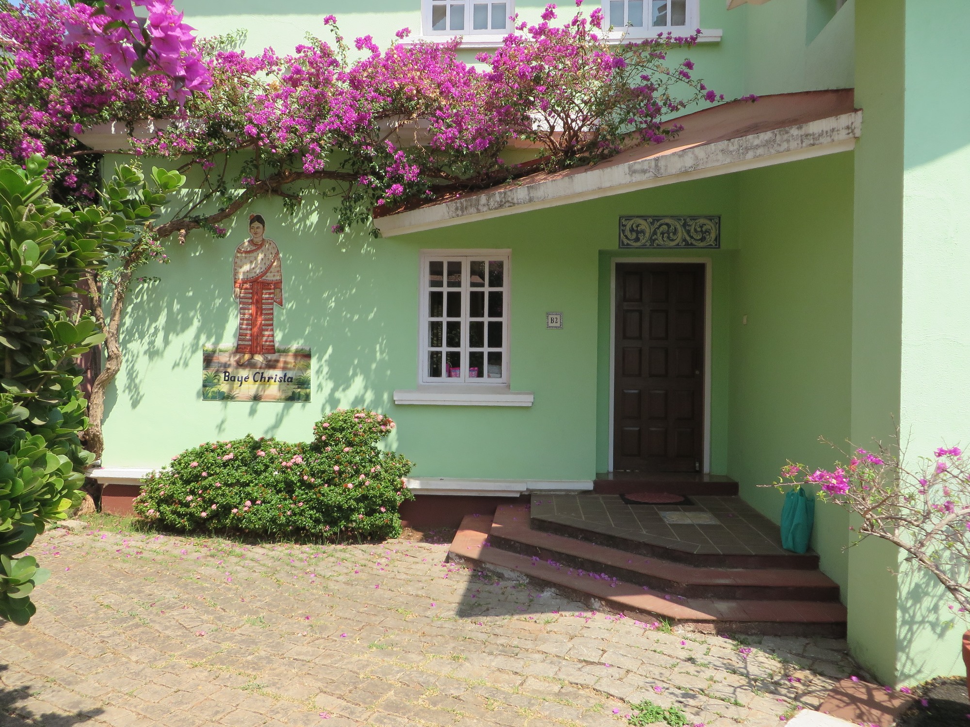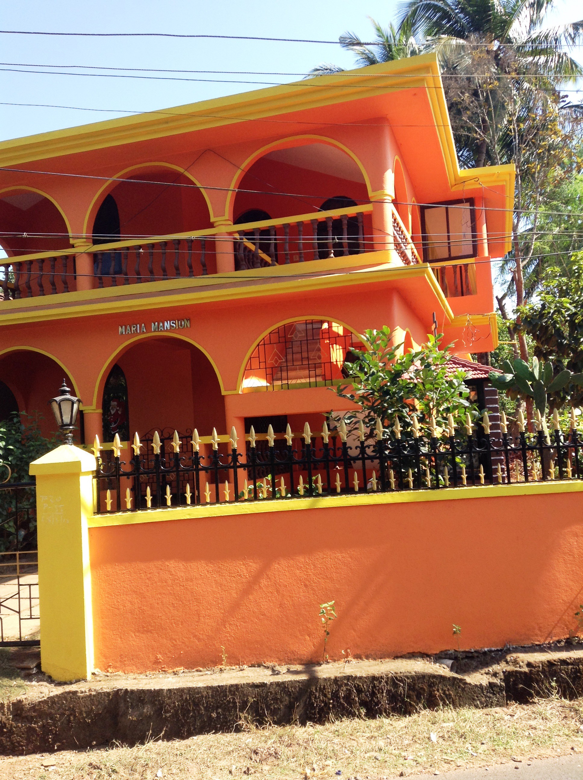 Driving around the country roads we are quite delighted by the deep colours Goans like to paint their houses. No wishy-washy magnolia for them – no no! They like magenta, bright orange and purple to brighten up the neighbourhood. Mr Alex has a pink creation himself.