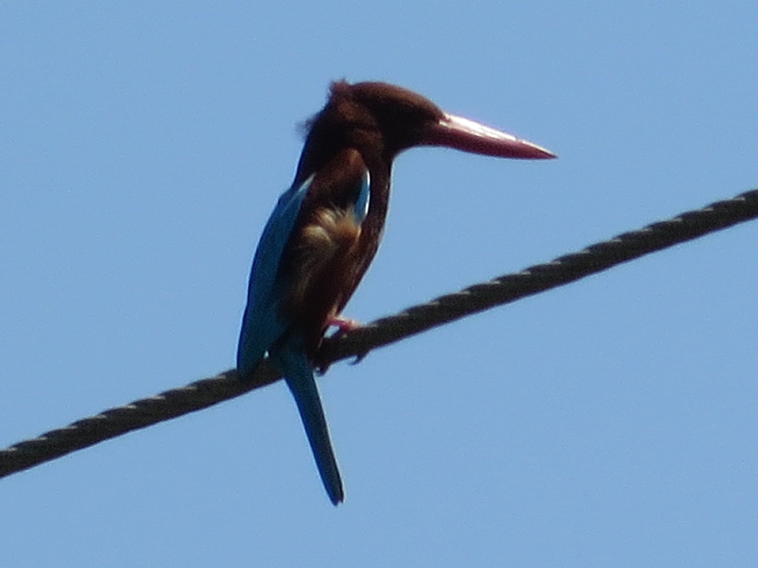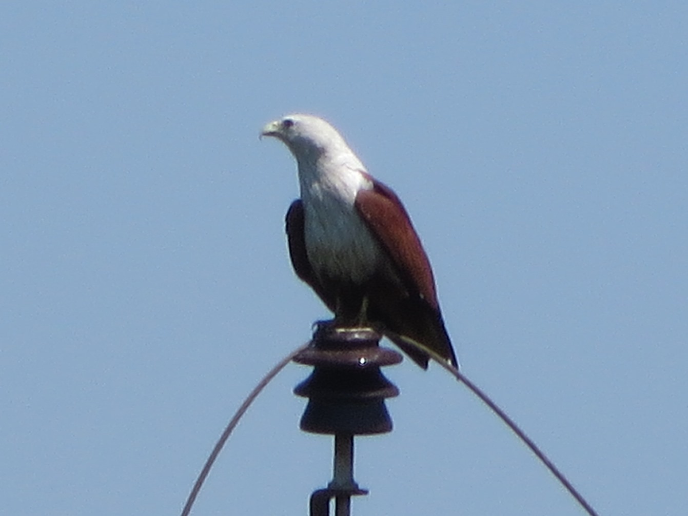 Brahminy kites with their white tummies and reddish backs swirled about and dived and sat like picture postcards on palm trees or electric cables. Kingfishers darted about, and fruit bats hung like musical crotchets from tree branches.