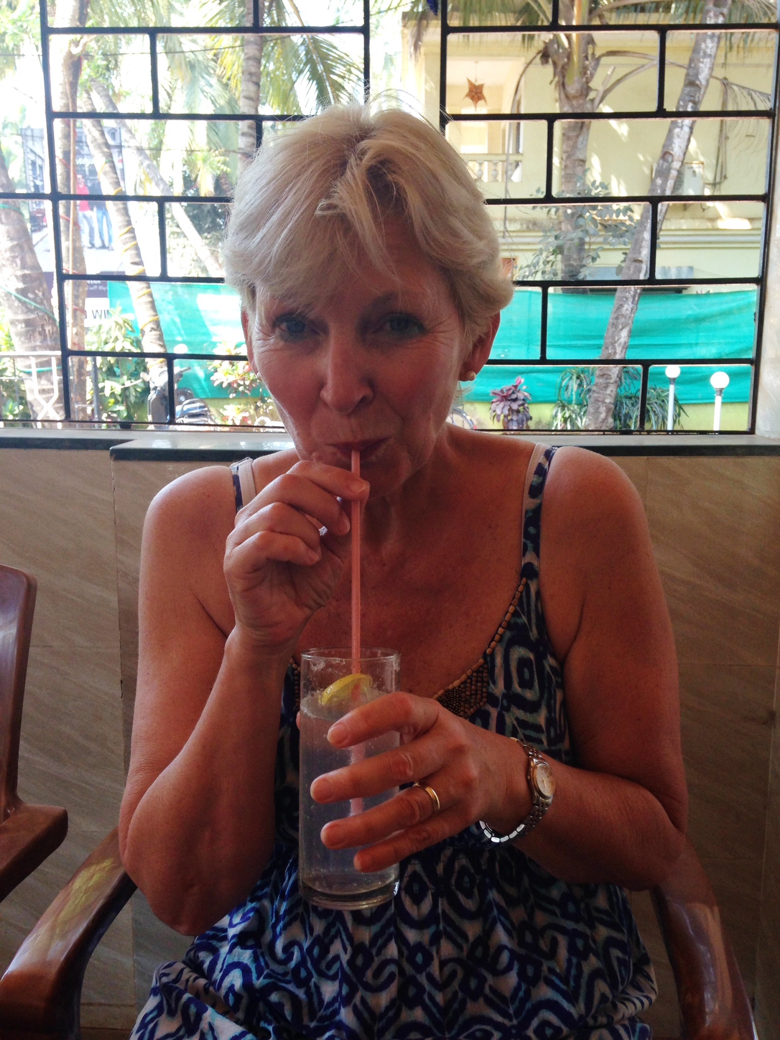 It is always crowded, and seats are more sought after than those at Covent Garden. We espied two and squeezed in, and started reading the India Times, and inevitably we got talking to our neighbour. He was a very cool dude, an elderly Indian man with such a relaxed view of life. He advocated the use of weed while we are in India, so good to expand the mind and brilliant for dementia. (I don’t have that, well, maybe a few senior moments????). He was so cool and told us about opium and such like. We told him about our nasty vodka experience. We thought the famous Smirnoff (made in India) might be as delicious as the Honeybee, but one taste and I could see a change in John. I tasted it, and it was vile, strong and tasted of toxic chemicals. Our friend said that as there was such a demand for alcohol, the producers don’t bother to distil it long enough or store the produce. Result was we poured the lot down the sink. Now where is this weed? HA HA HA! Our learned friend saw John reading the paper, and shook his head. He only reads the paper once a week. ‘SOS SOS,’ he explained. I looked at him, and he smiled: ‘Save Our souls from the Same Old Shit!’