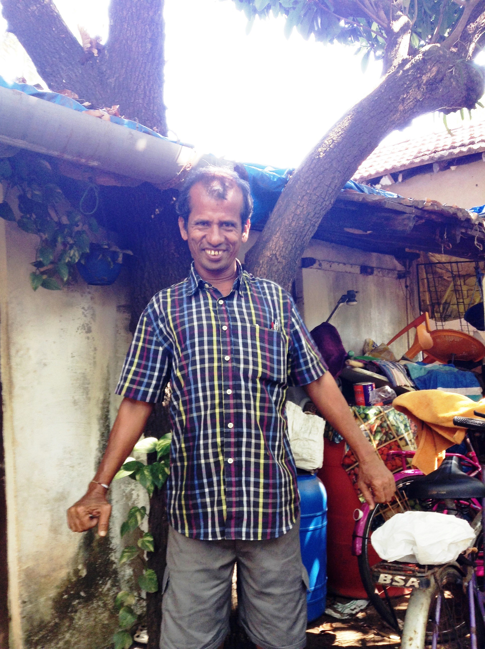 He is one of these people blessed with incredible memories. He can tell you your post code, no matter where you live, and speak in a multitude of languages. He chatted to me about Nicola Sturgeon and Scottish Independence, then the colonial days of Malaya and India. He chats with the familiarity of slang, and his cooking chatter was spattered with ditties like, ‘put a little bit of fire on the dance floor’ and ‘keep moving, keep moving!’ That was instead of ‘increase the heat!’ I just wish I had a half his memory! He took me and a German couple through the palms and small farm allotments to his very small house, which had a tree growing through his roof.