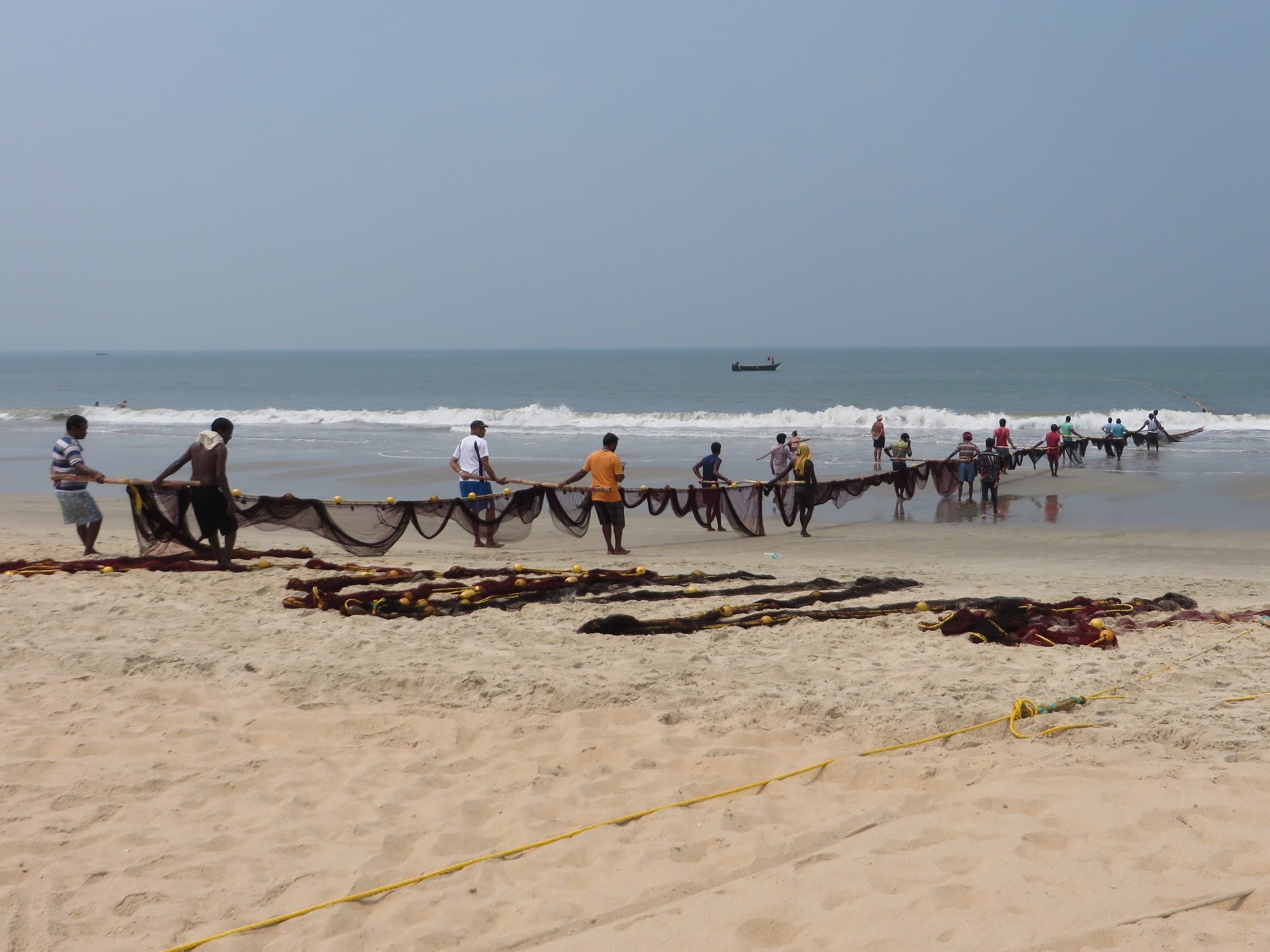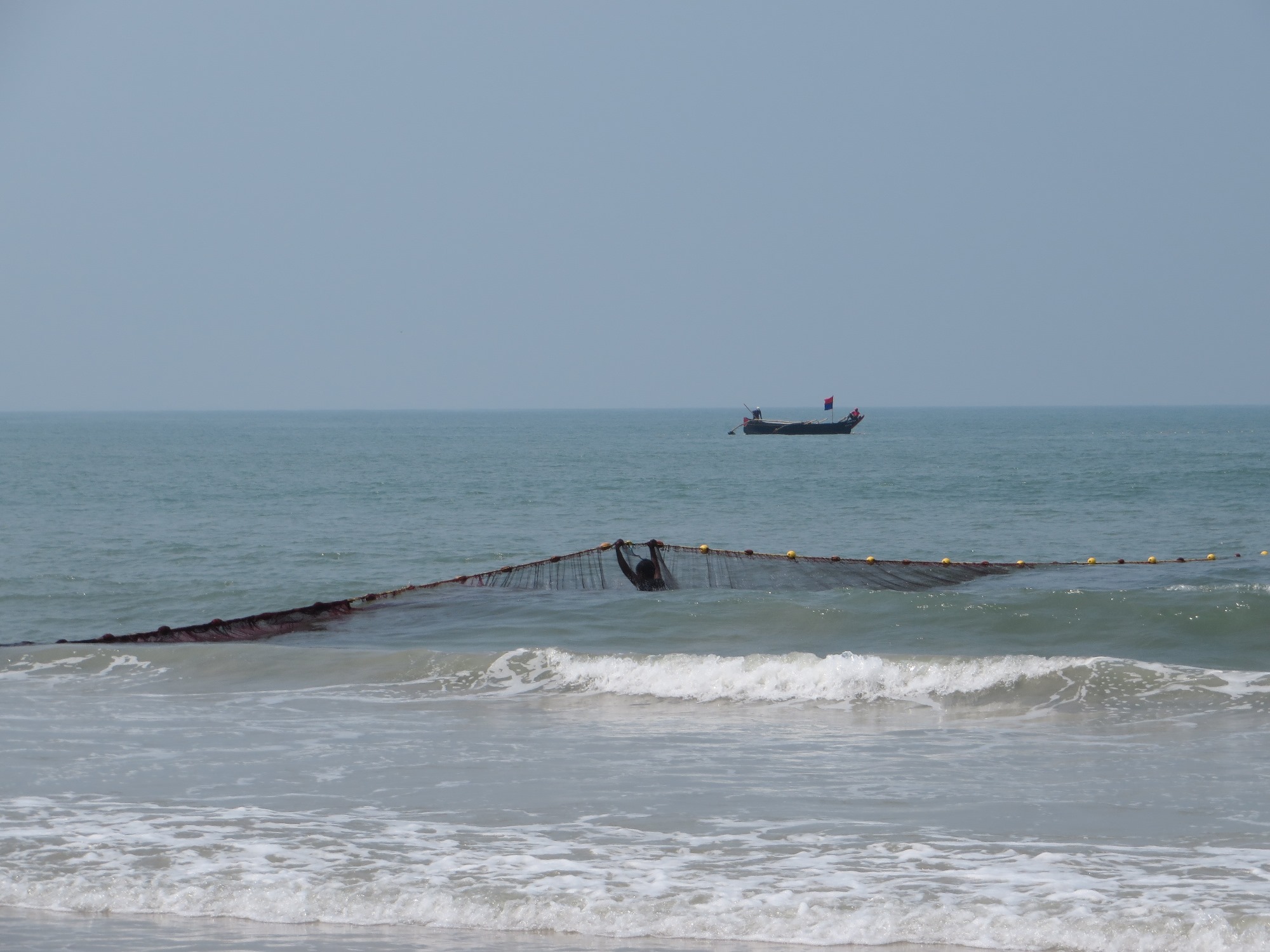 It was all very laid back, as they pulled in pairs, and only the poor guy in the sea was struggling with the waves as he tried to hold the nets steady.