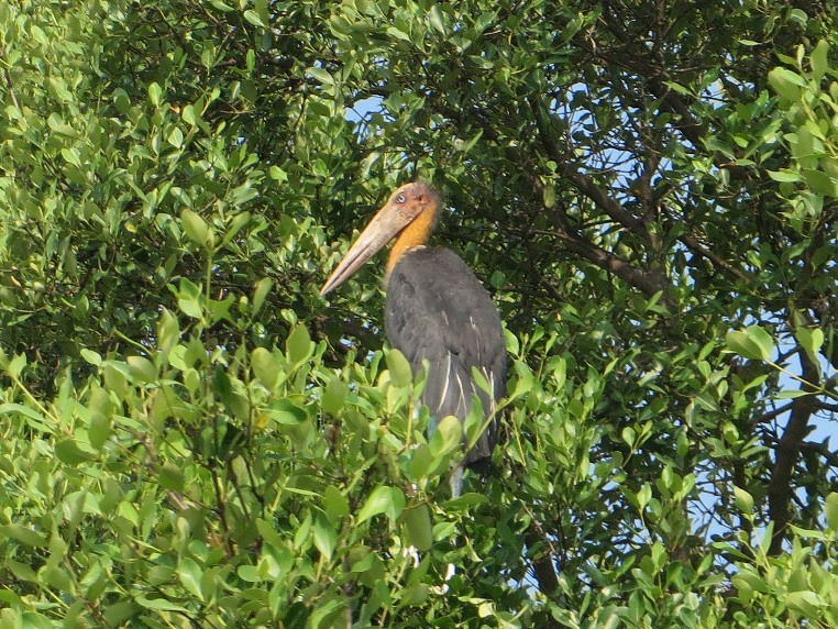We putted up the Mandovi estuary through the mangroves, and John was delighted to see a large stork sunning itself on a branch.
