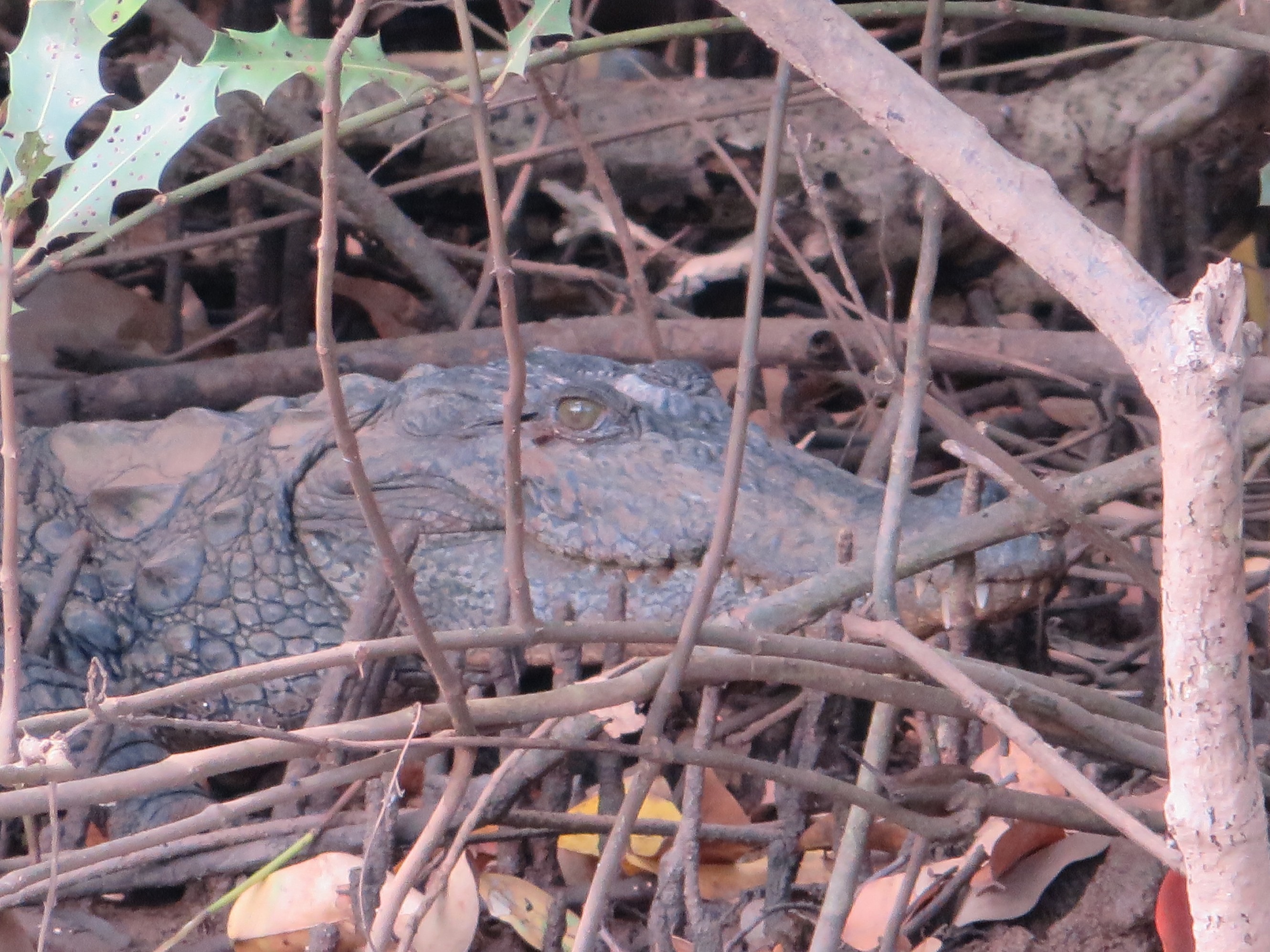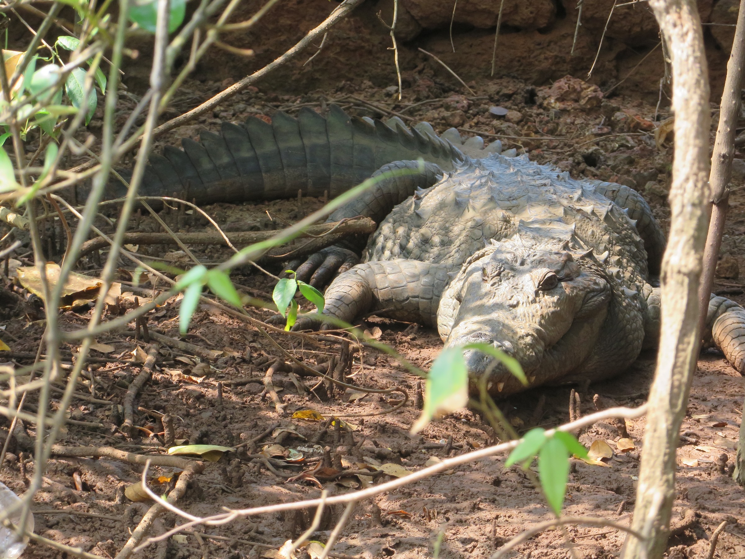We did see some mean looking heads that slipped down under the murky water as we approached, and another that lay inert on the bank.