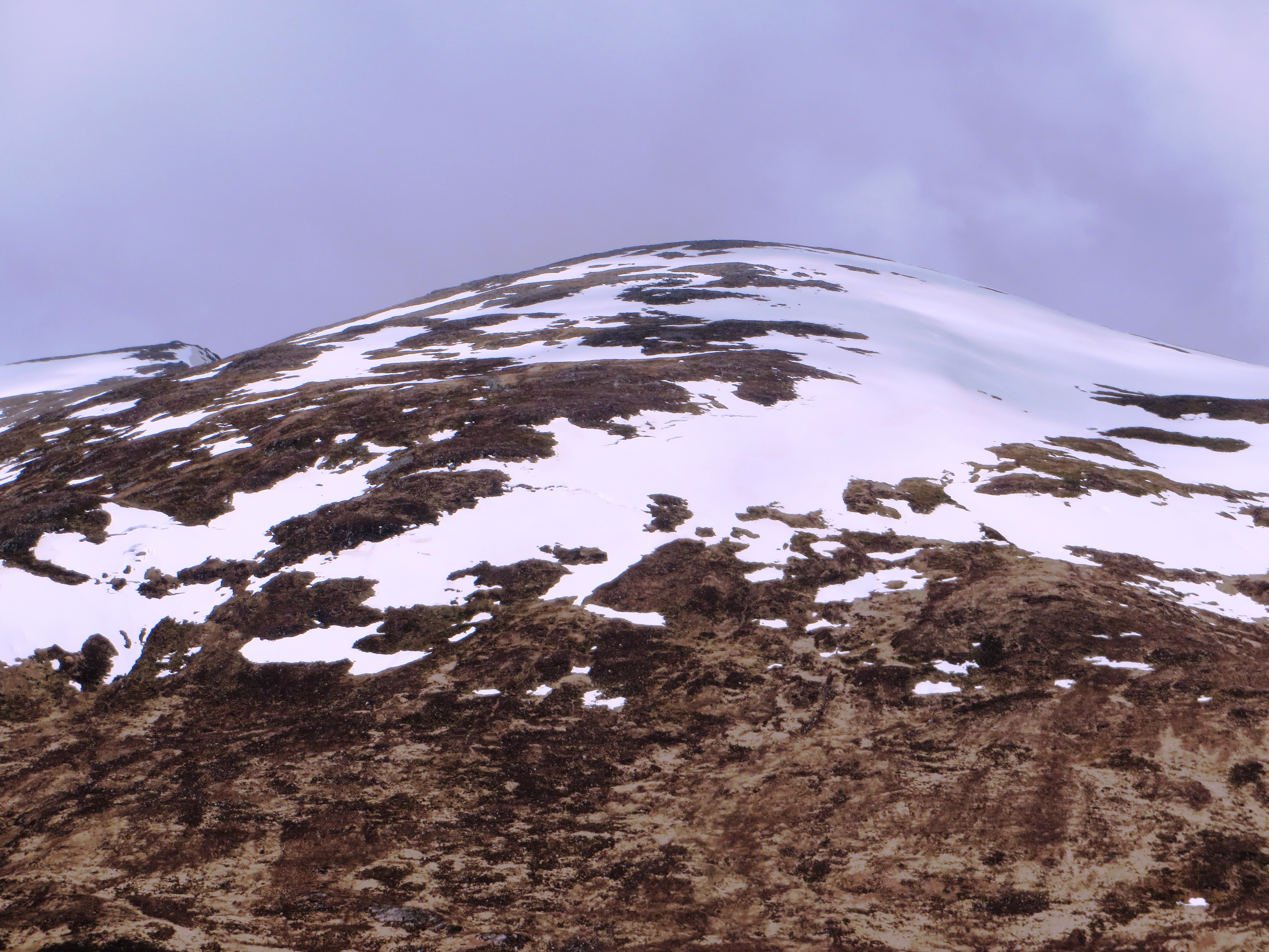 It seemed strange just passing by, so instead we stopped to record the still snowy peaks of Ben Alder and the lacy pattern of snows on the lower mountains. The sky was dark, but we headed west to Fort William and gobbled up some very good fish and chips.