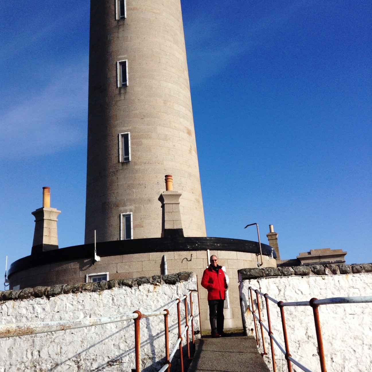 The single track road was murder, and l o n g. Finally we arrived at the light house, and I remember my James MacTavish and Suzannah from The Highland Games had a thing about this place, so I said to John to stand still so I could snap him with the mighty structure. It was like one of these very bad cartoons, I was so busy trying to get the height and John into the picture I fell back and lost my balance. By this time he was bored and had walked away. I was fizzing. Imagine if I had fallen into the wild sea? I looked out on the islands of Rum, Muck, Eigg, Mull and Tiree. Too far for anyone to spot me, that’s for sure.
