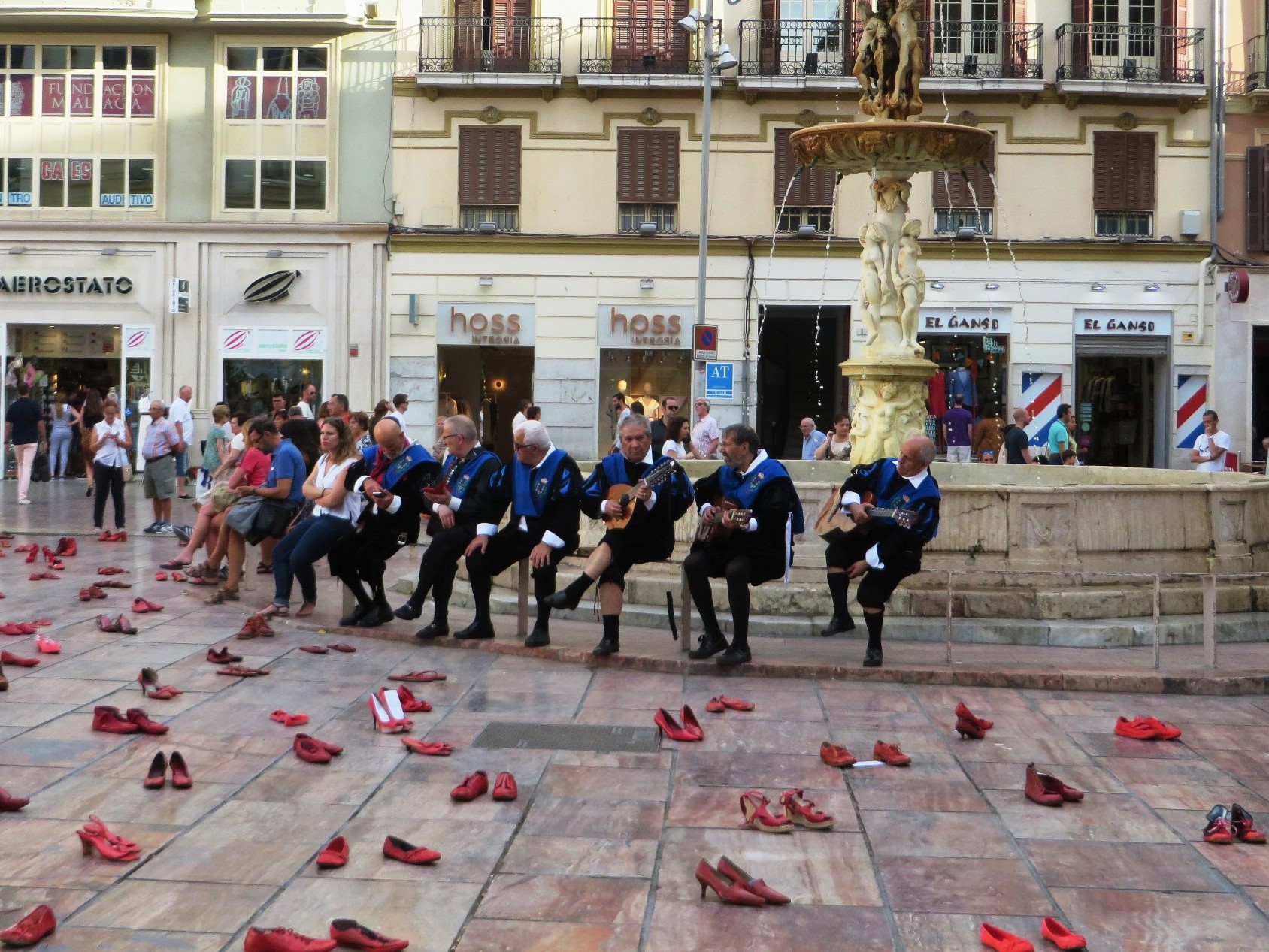 The square was covered in pairs of red shoes, it was very eye catching, then suddenly elderly men dressed in Elizabethan bloomers and tights arrived to serenade us with lutes and guitars. It was very surreal being surrounded by troubadours and red shoes!