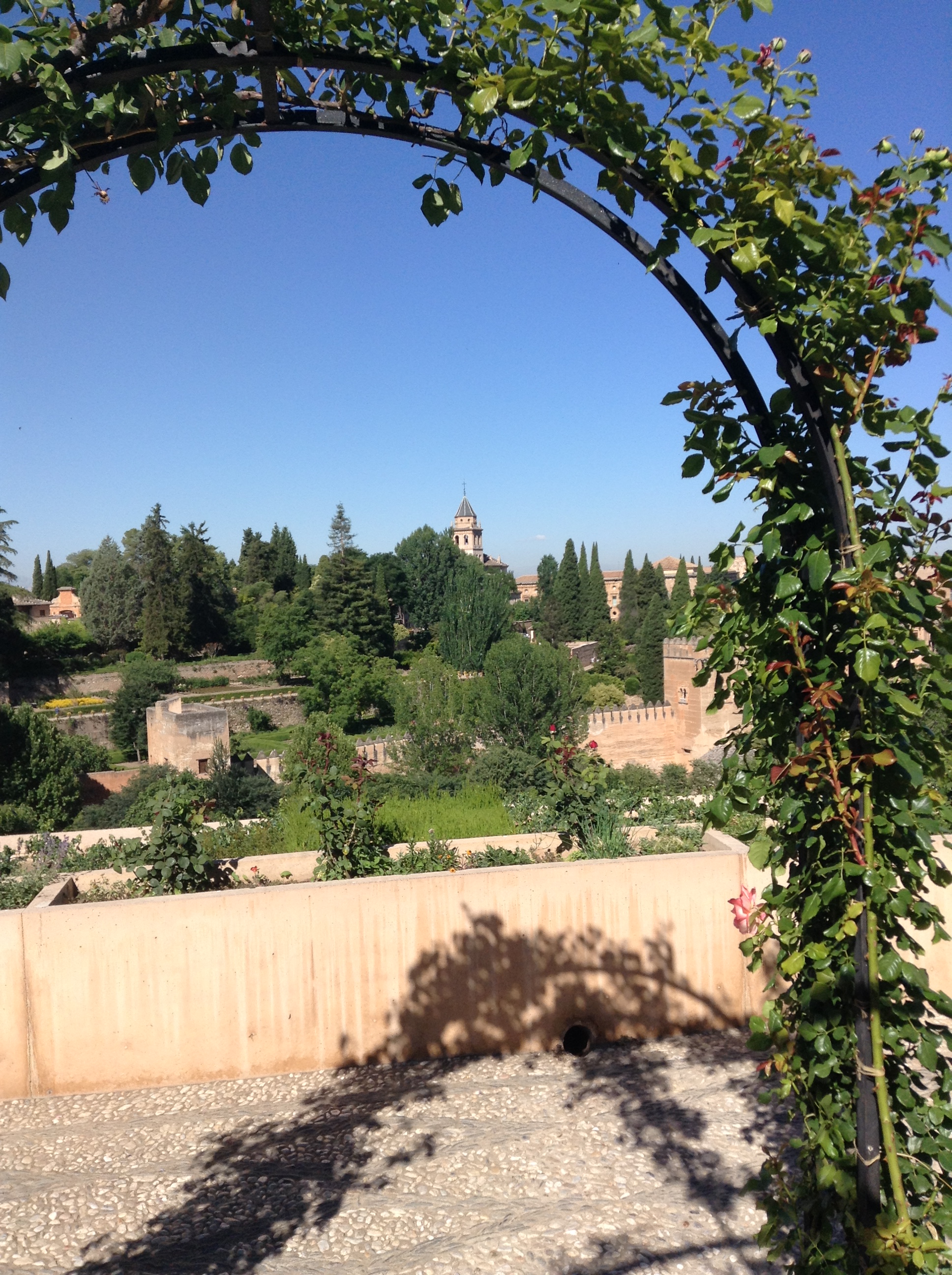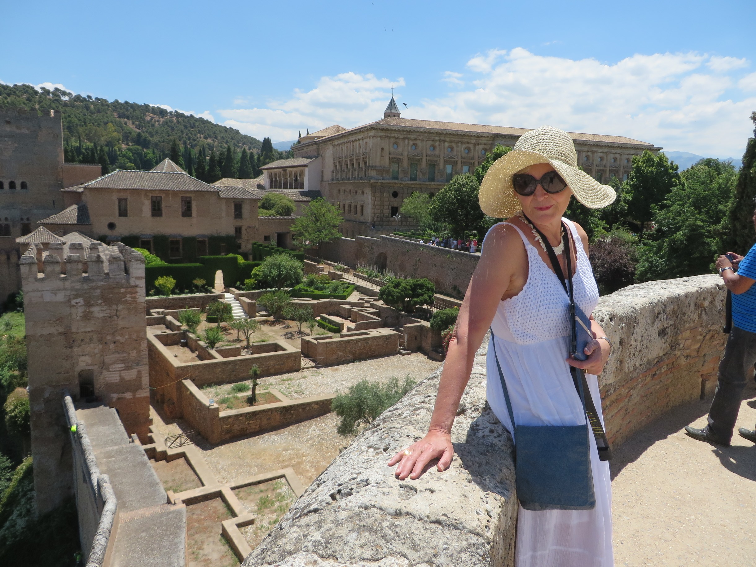 John and I and some others on the group took a taxi to the Alhambra Palace in Granada for the day. We lined up in the queue to get our tickets, under the watchful eye of a right spiv with wraparound sunglasses and a very large pistol in his holster. I suppose he needed it to keep the fifteen or so tourists in check! We wandered around the gardens and I was truly amazed. Here was a palace that is heaven on earth.