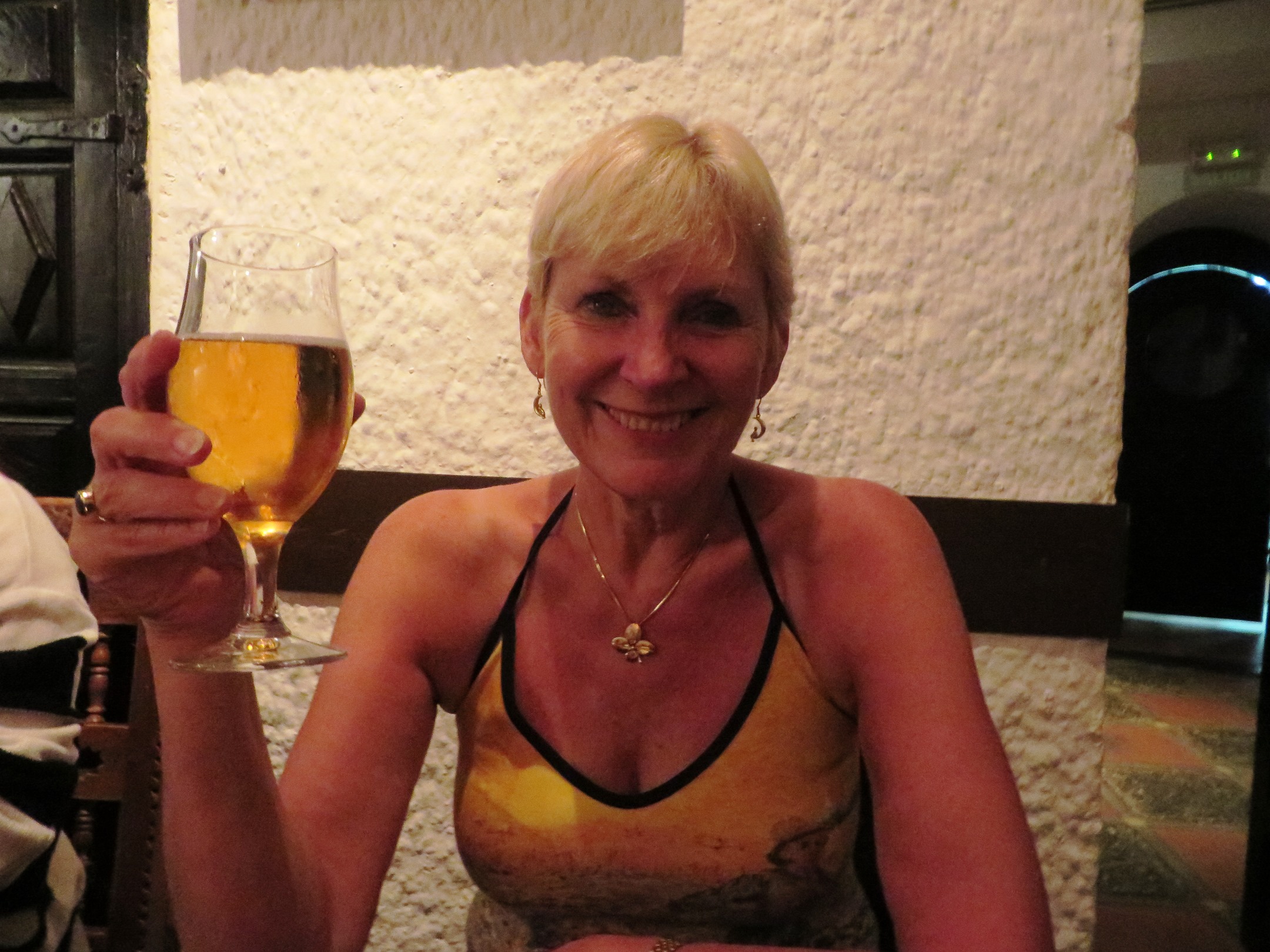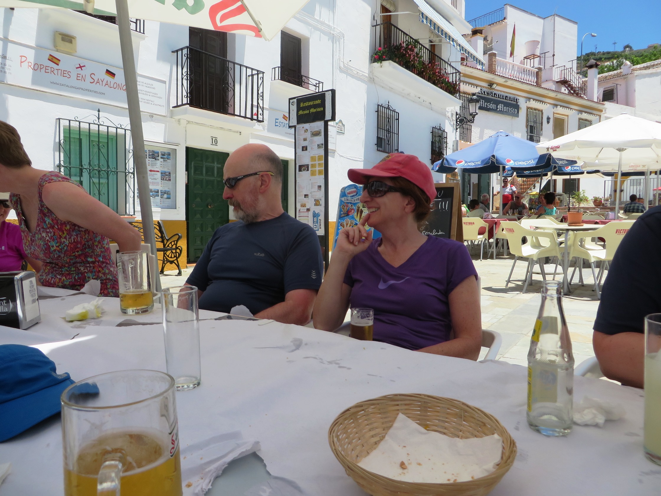 We trudged down to Salares, where there was a lot of evidence of Islamic architecture. The church is a perfect example of hybrid styles, built on the site of an old mosque, but retaining the minaret as a church tower. We were just glad to get to Theo’s bar and gobble up the tortilla and pork and fruity salad. A very welcome lunch.