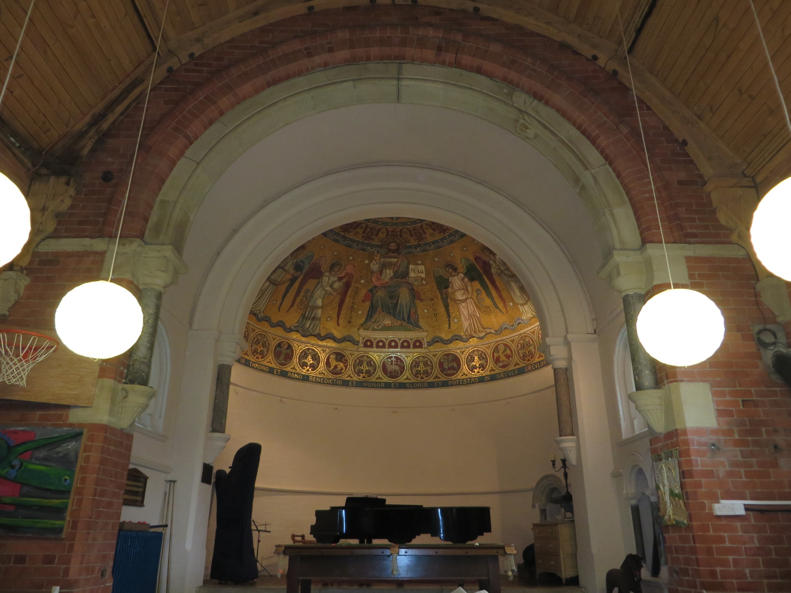 Steve, her partner, made us a cup of tea and showed us around. There was a grand piano that was delivered by two local guys. Steve told us that he heard a snap as they were raising the piano up on to the stage beneath the apse, and it was the young fellow’s Achilles’ tendon. Manfully he completed the job, even though he was in agony.
