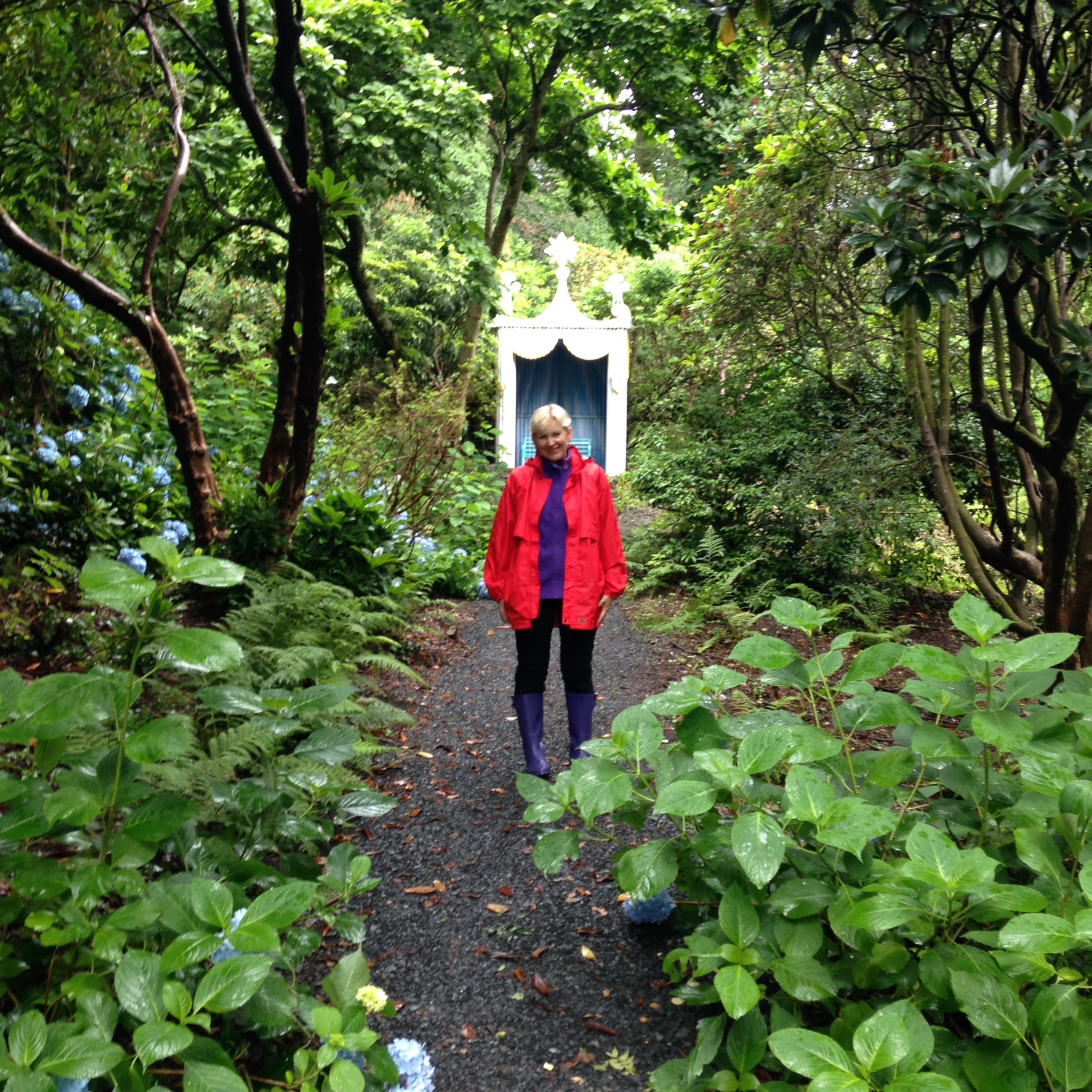 There were domes, columns, a campanile, Buddhas, and an Atlas holding up the world. This eccentric man, Mr Clough William-Ellis, who loved to wear plus fours with bright yellow woollen stockings, had wanted to create a home, not for fallen women, but for fallen buildings. It was his life’s work and passion. I enjoyed it all, and felt so in tune wearing my new purple wellies.
