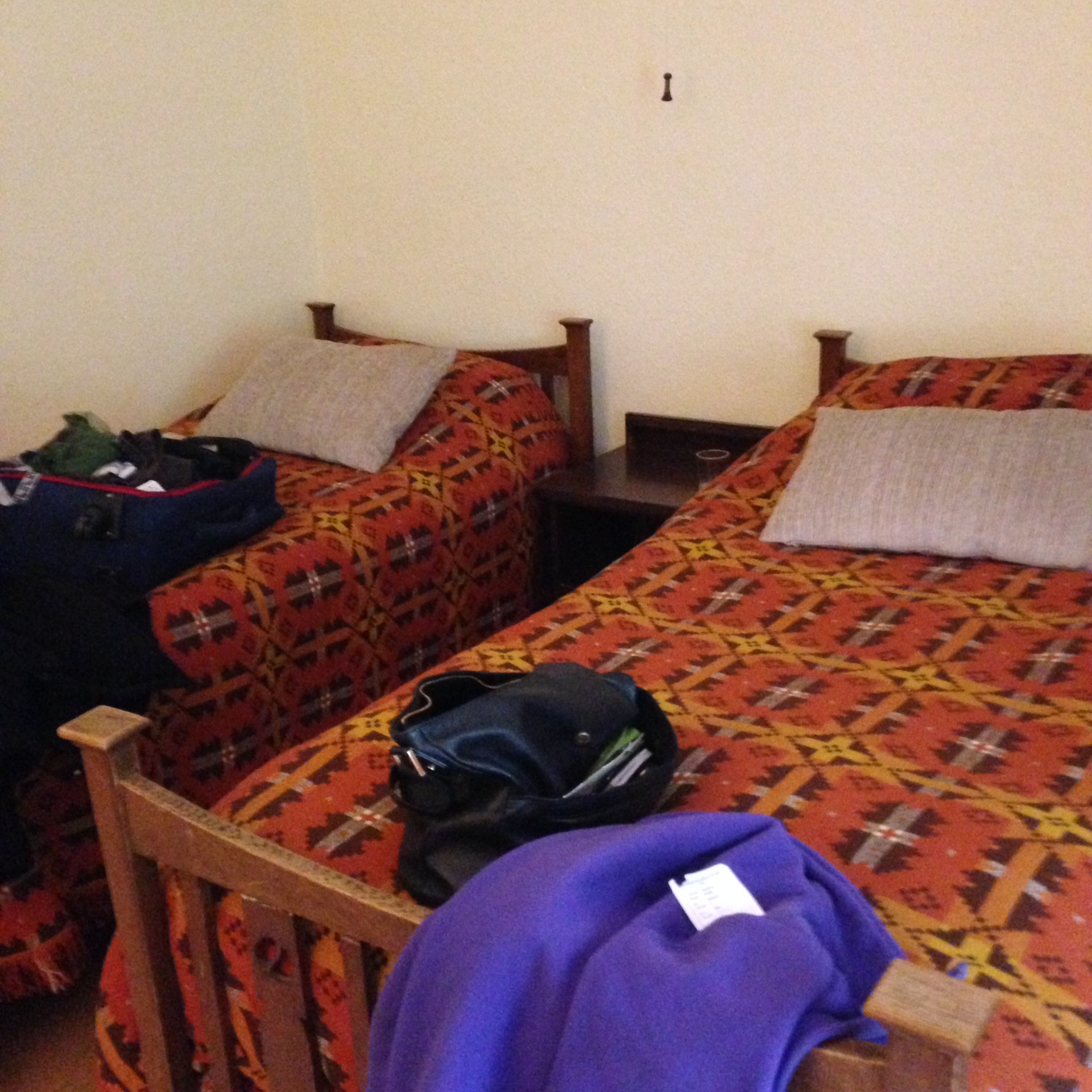 It felt like falling back in time to the early part of the century. Our single beds were like boarding school issue; there were round-pin plugs in the wall, and a chintz lounge just waiting for the men to come off the hill, boasting of their daring-dos.